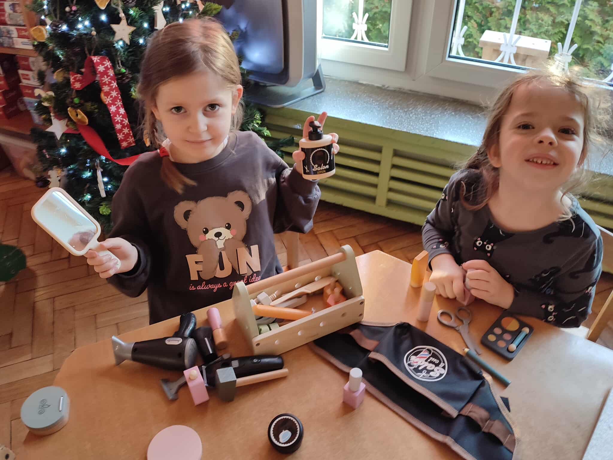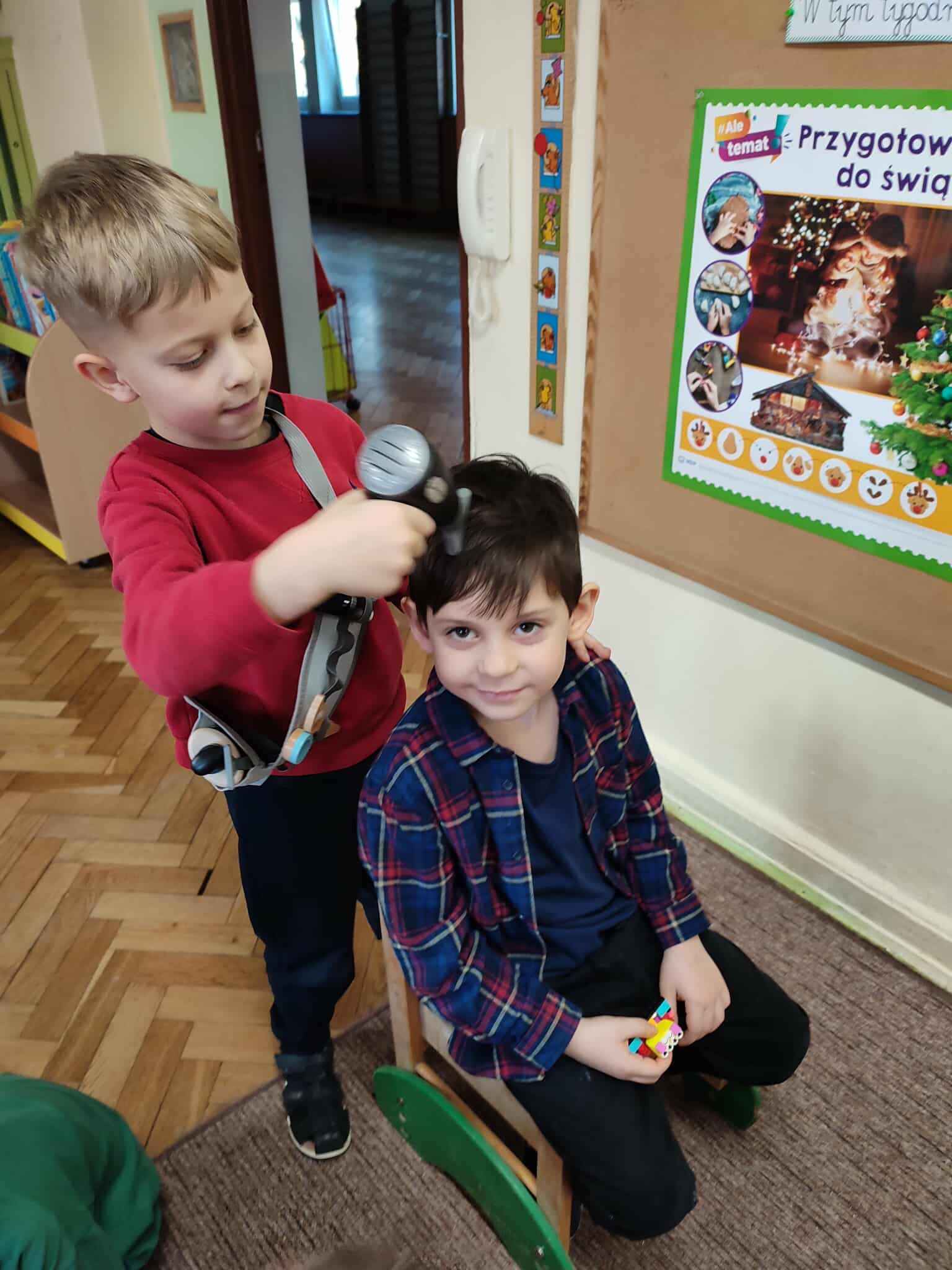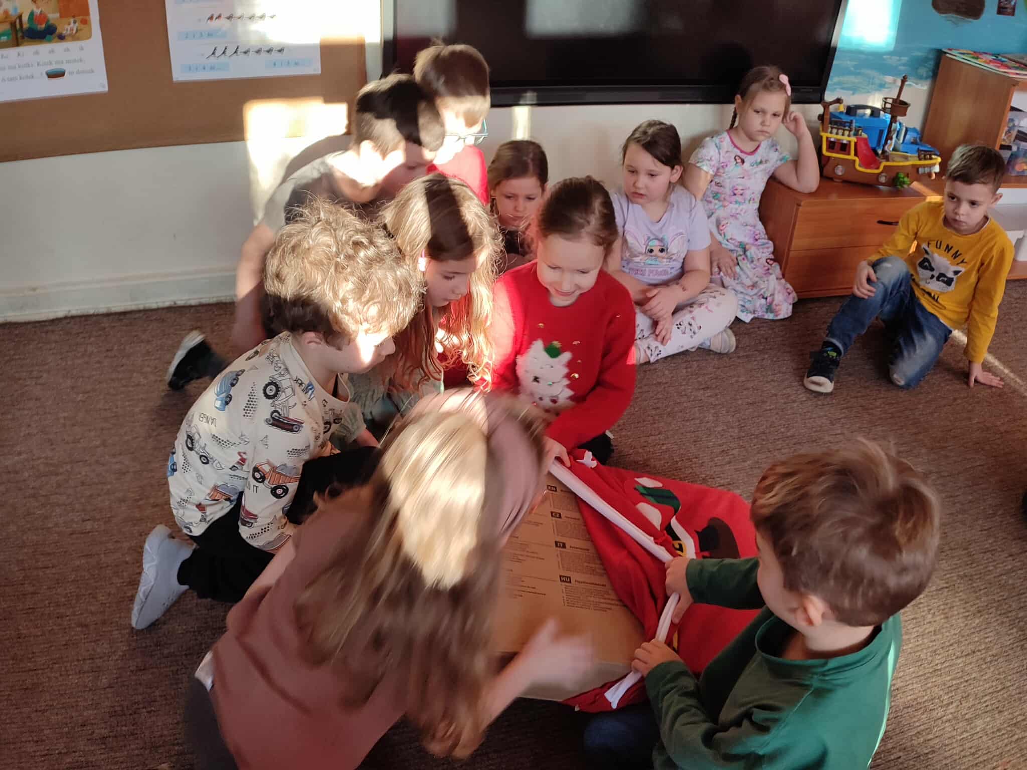 Po dzisiejszym spotkaniu z Mikołajem w naszych salach czekały na nas worki pełne niesamowitych prezentów od Świętego Mikołaja! Z ogromnym podekscytowaniem rozpakowywaliśmy paczki i… aż nie mogliśmy uwierzyć własnym oczom! Dostaliśmy drewniane przyrządy fryzjerskie, super warsztat, cymbergaj, piłkarzyki, mnóstwo kolorowych klocków LEGO i gry dydaktyczne, dzięki którym będziemy ćwiczyć naszą spostrzegawczość. Każda rzecz wywołała wielki uśmiech na naszych twarzach – było mnóstwo okrzyków radości.