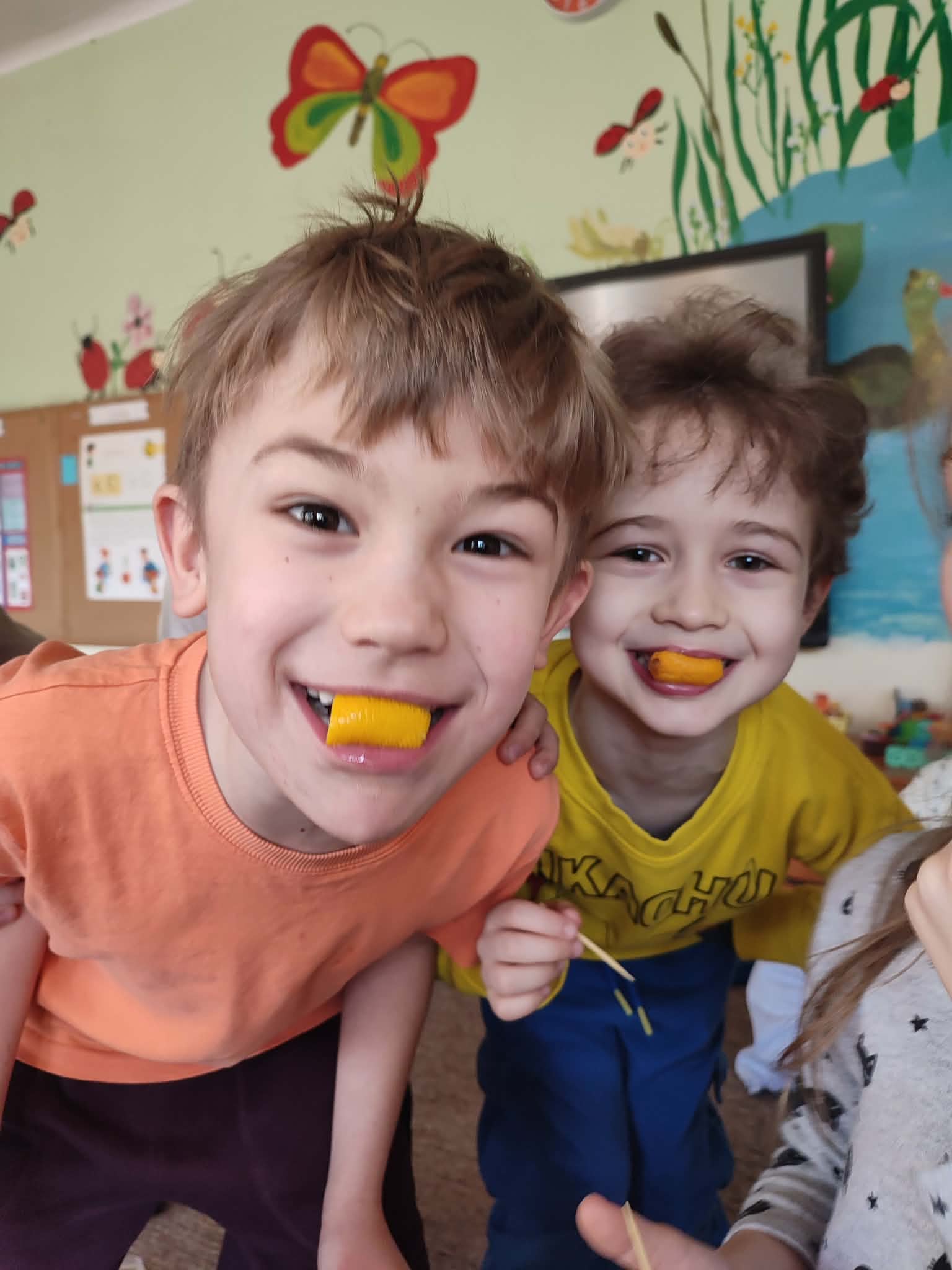 Kto powiedział, że nauka liter musi być nudna... Ostatnio poznawaliśmy literę C. C jak cytryna – i szybko okazało się, że wśród nas są sami odważni! Każdy chętnie spróbował kawałka cytryny, a przy tym było mnóstwo śmiechu i zabawy. Później zamieniliśmy się w ogrodników. Na początku ćwiczyliśmy odczytywanie sylab otwartych z literą C, dopasowując je podczas sadzenia cebulek do odpowiednich doniczek. A na zakończenie tygodnia przeszliśmy do praktyki – każdy z nas zasadził swój własny szczypiorek. Teraz będziemy obserwować, jak rośnie i dbać o nasze małe uprawy. Nauka litery C okazała się naprawdę ciekawą przygodą!