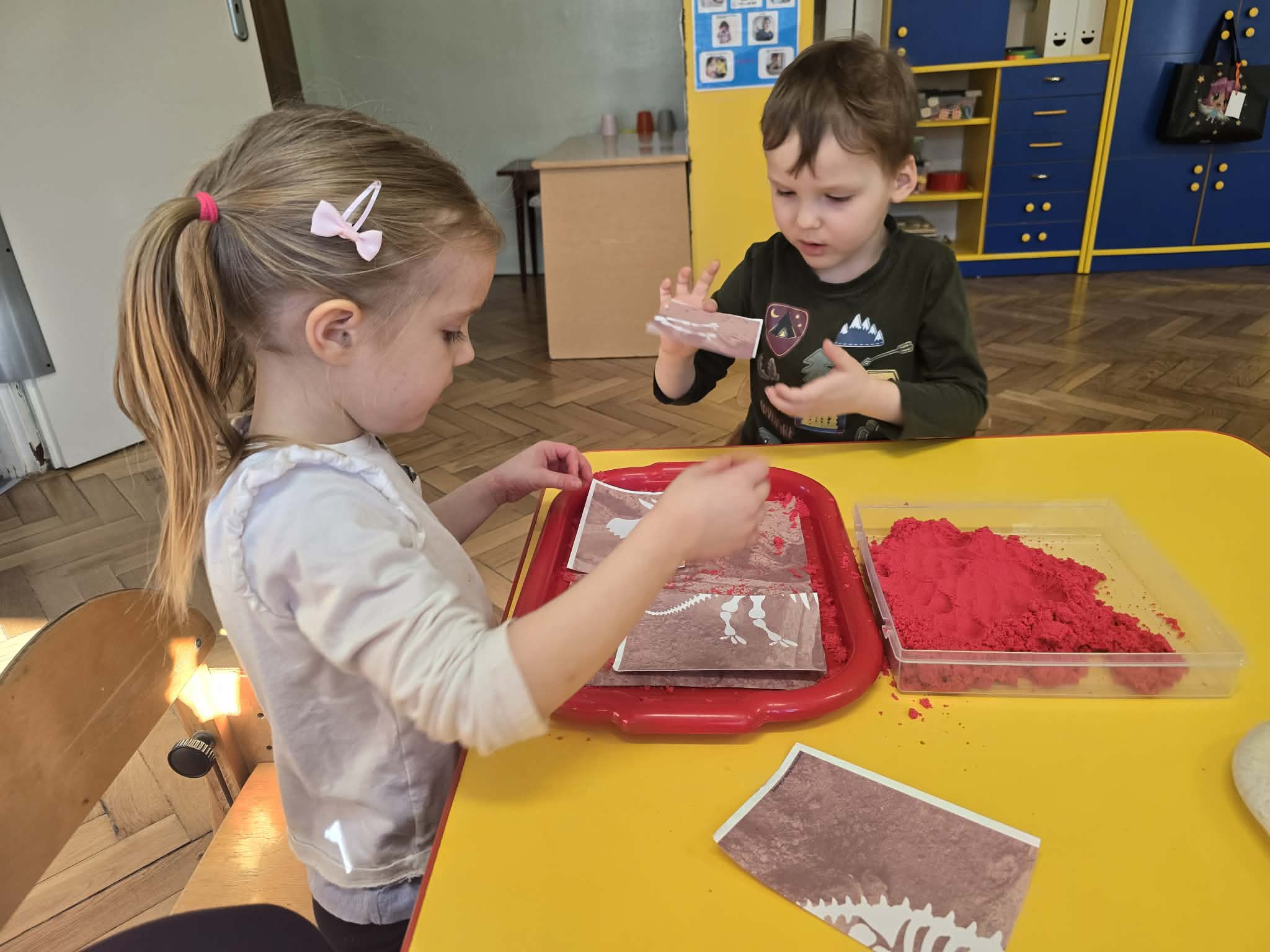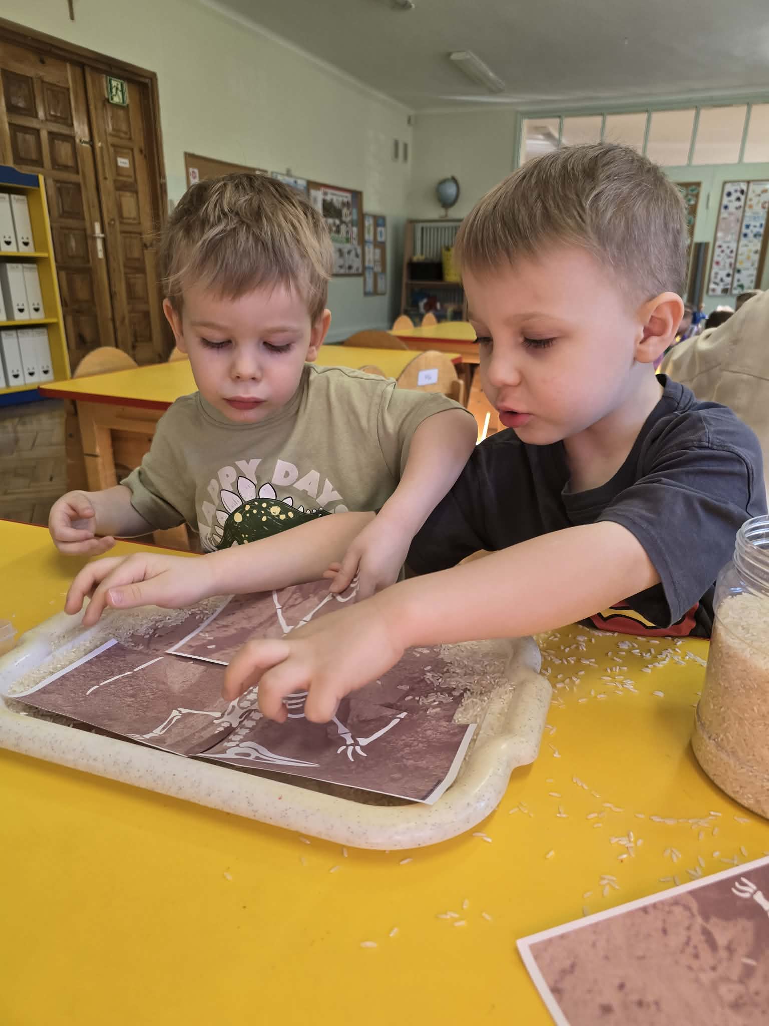 Nie zabrakło również świetnej zabawy – wcieliliśmy się w paleontologów i prowadziliśmy własne „wykopaliska”, poszukując ukrytych skamieniałości. Ten tydzień był pełen radości, kreatywności i nowych, ciekawych informacji o prehistorycznym świecie.