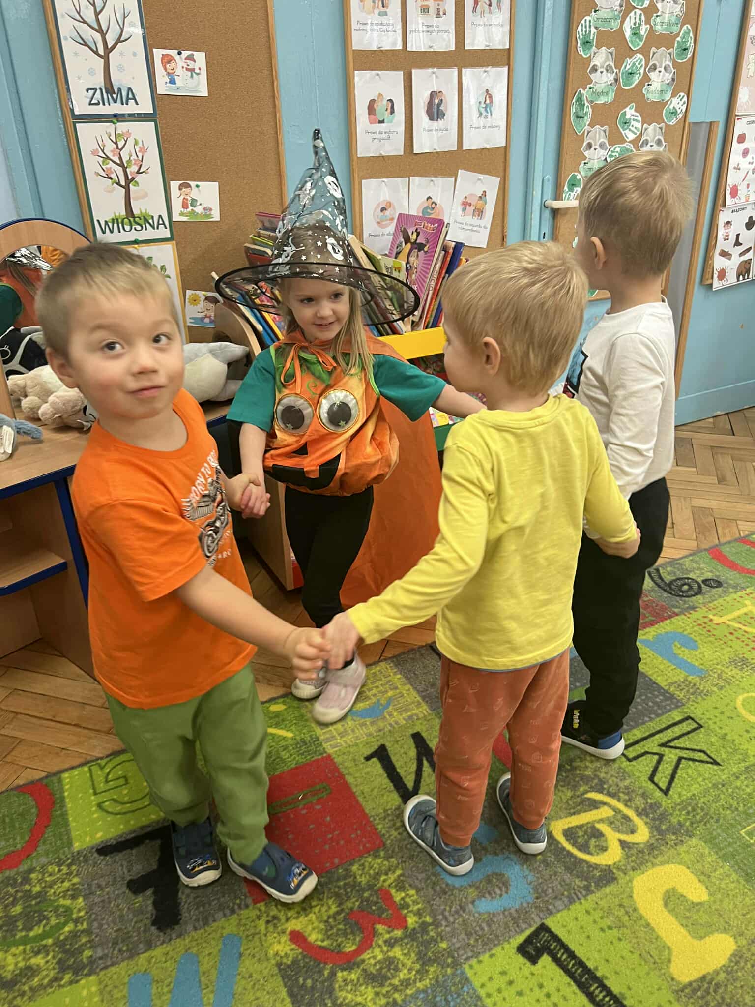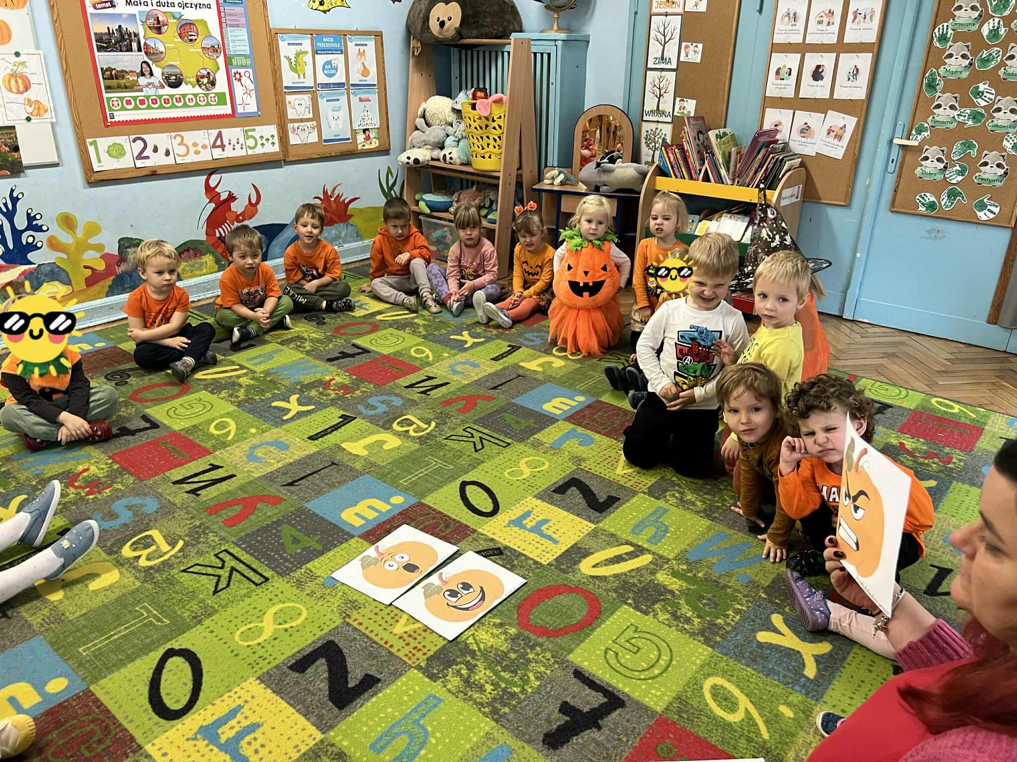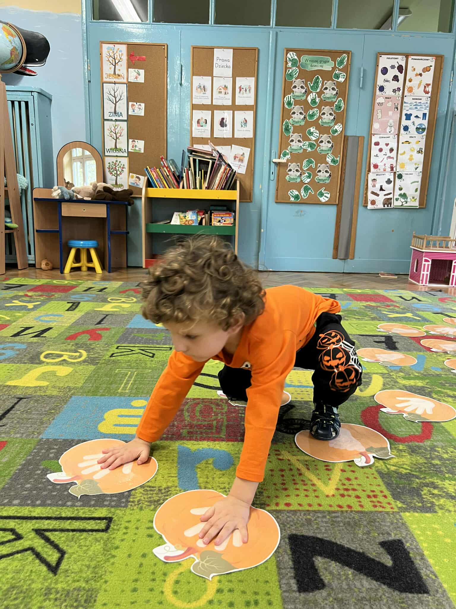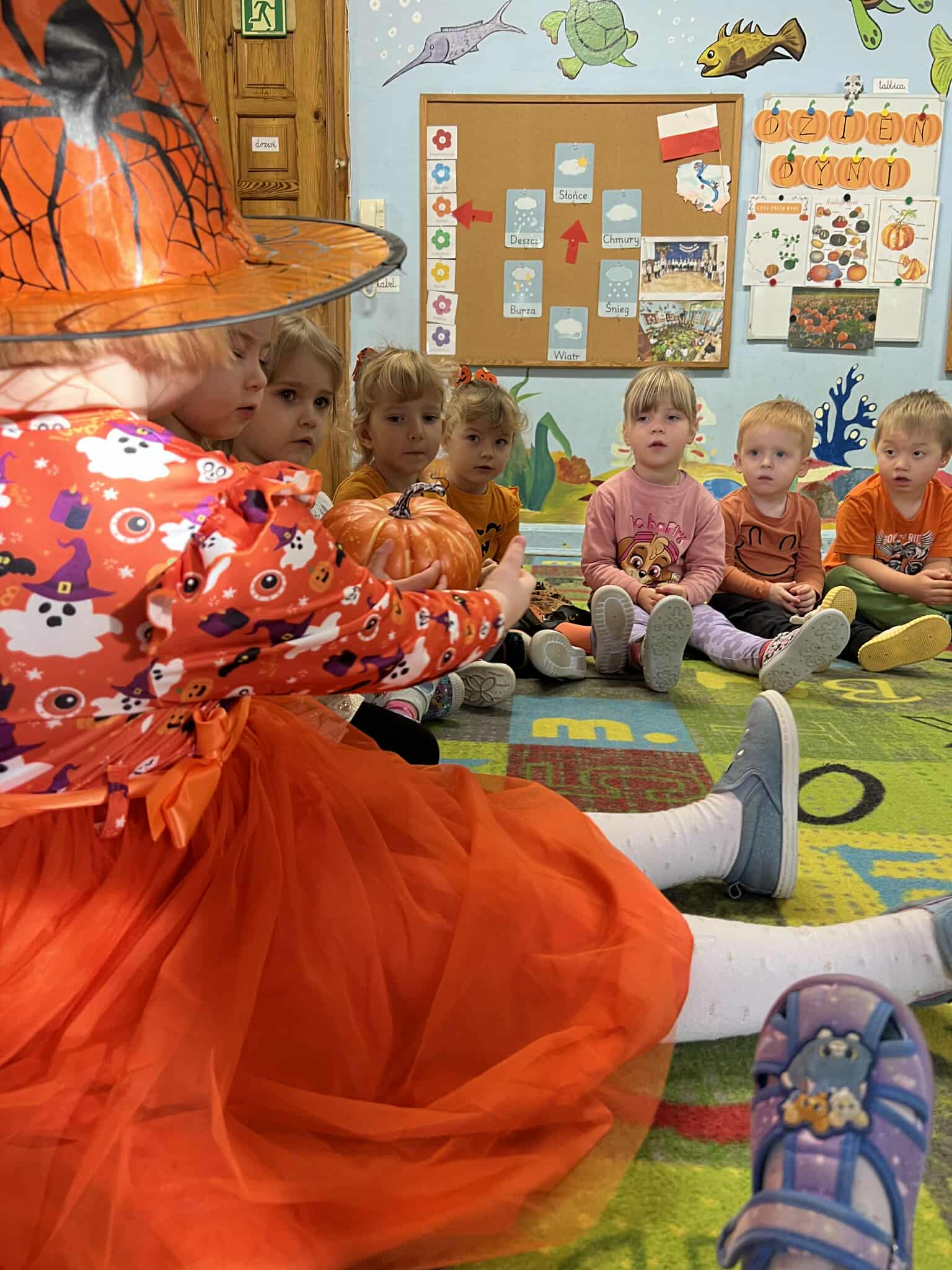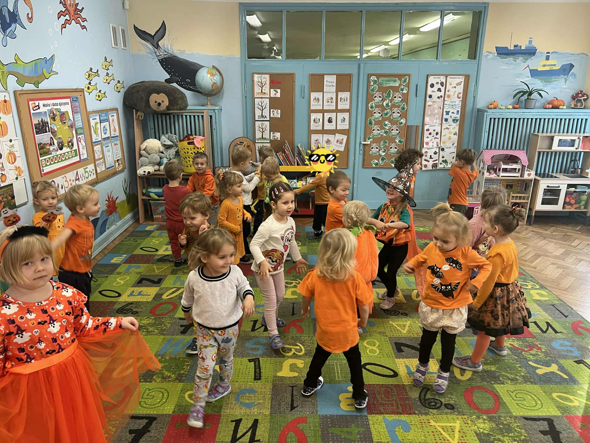 Dziś w naszej grupie obchodziliśmy Dzień Dyni – święto pełne pomarańczowych barw, radości i zabawy! Dzieci przyszły ubrane w stroje w kolorach jesieni, a w sali królowała oczywiście dynia – duża, mała, okrągła i wesoła.