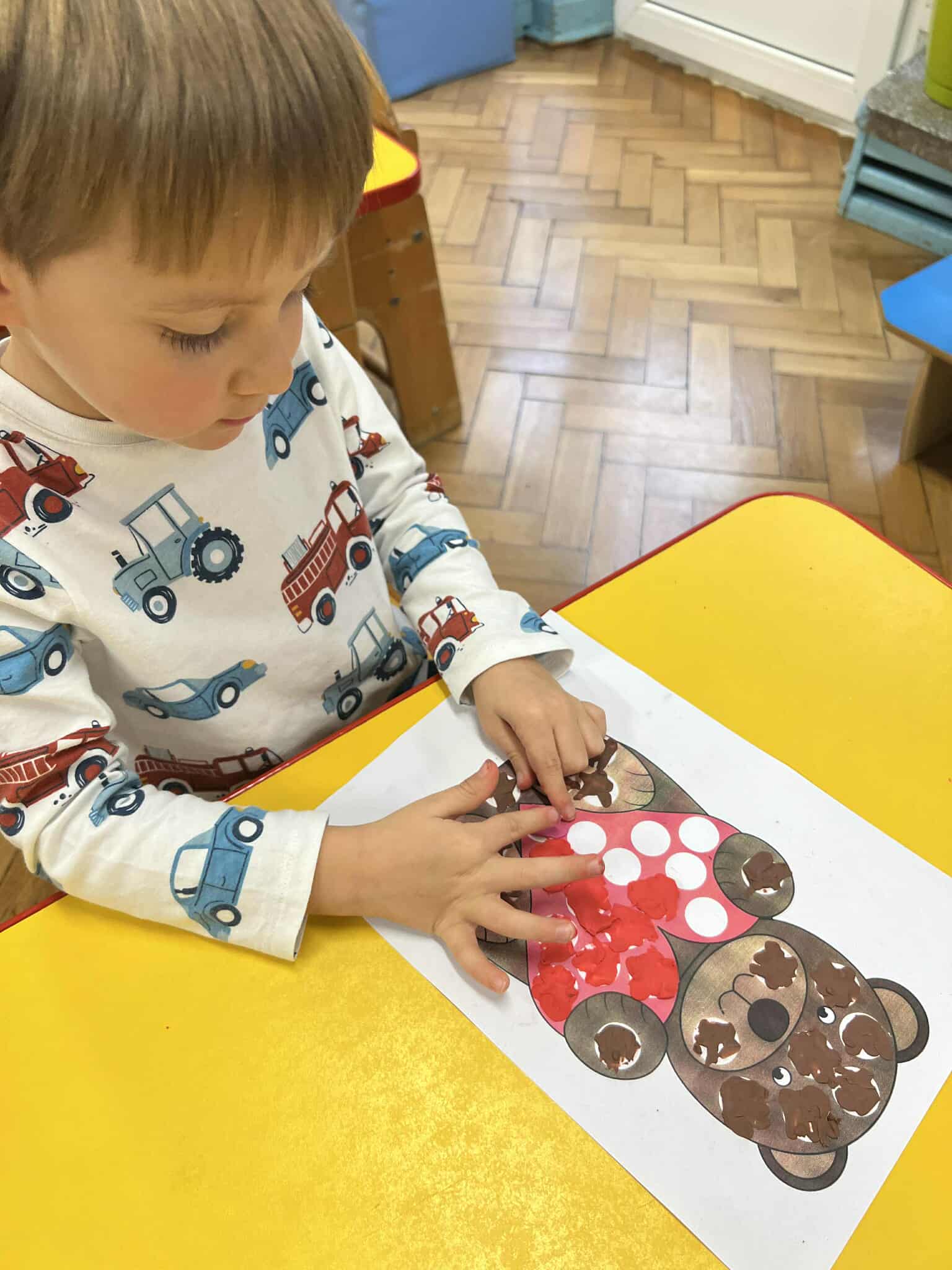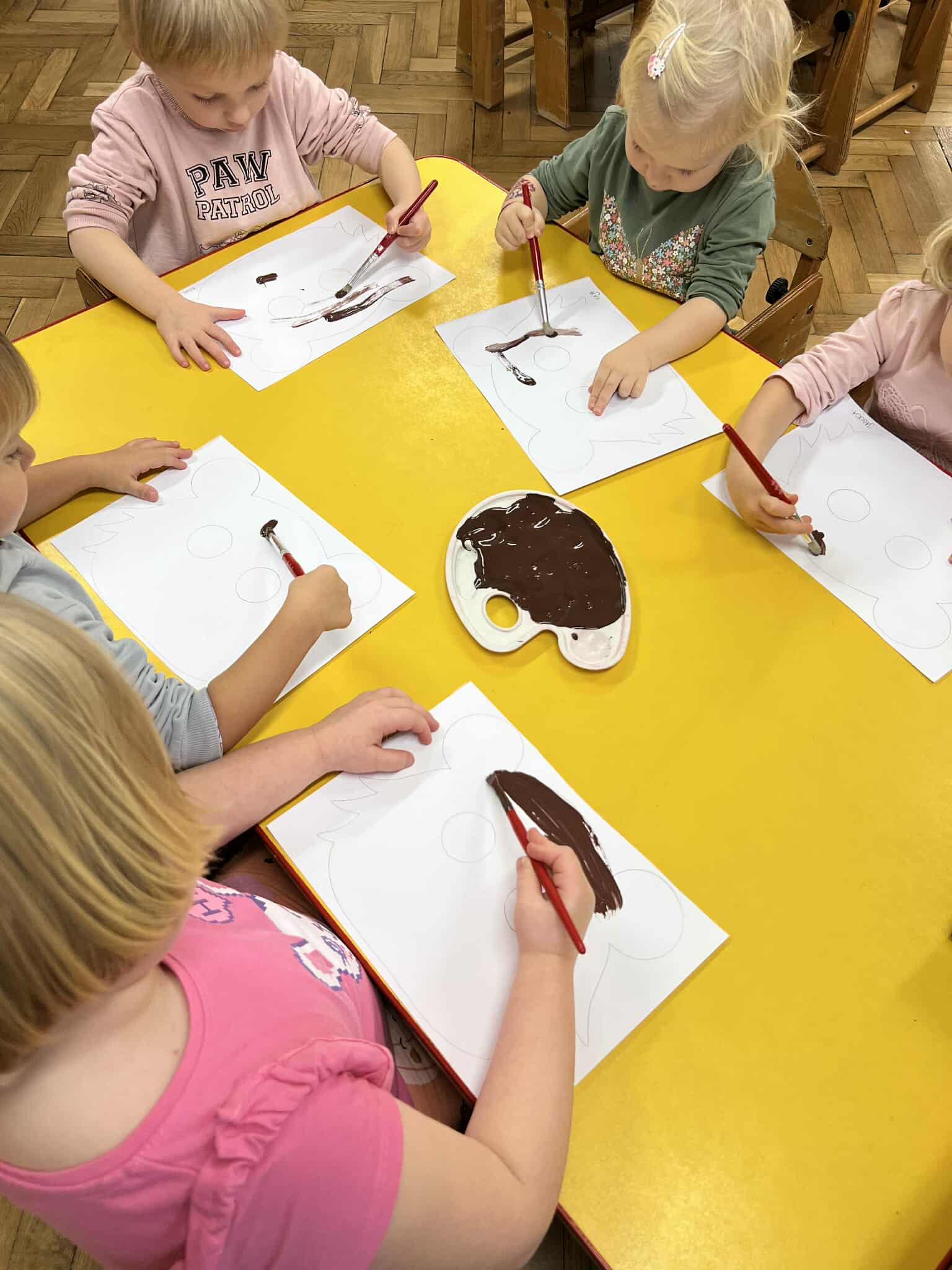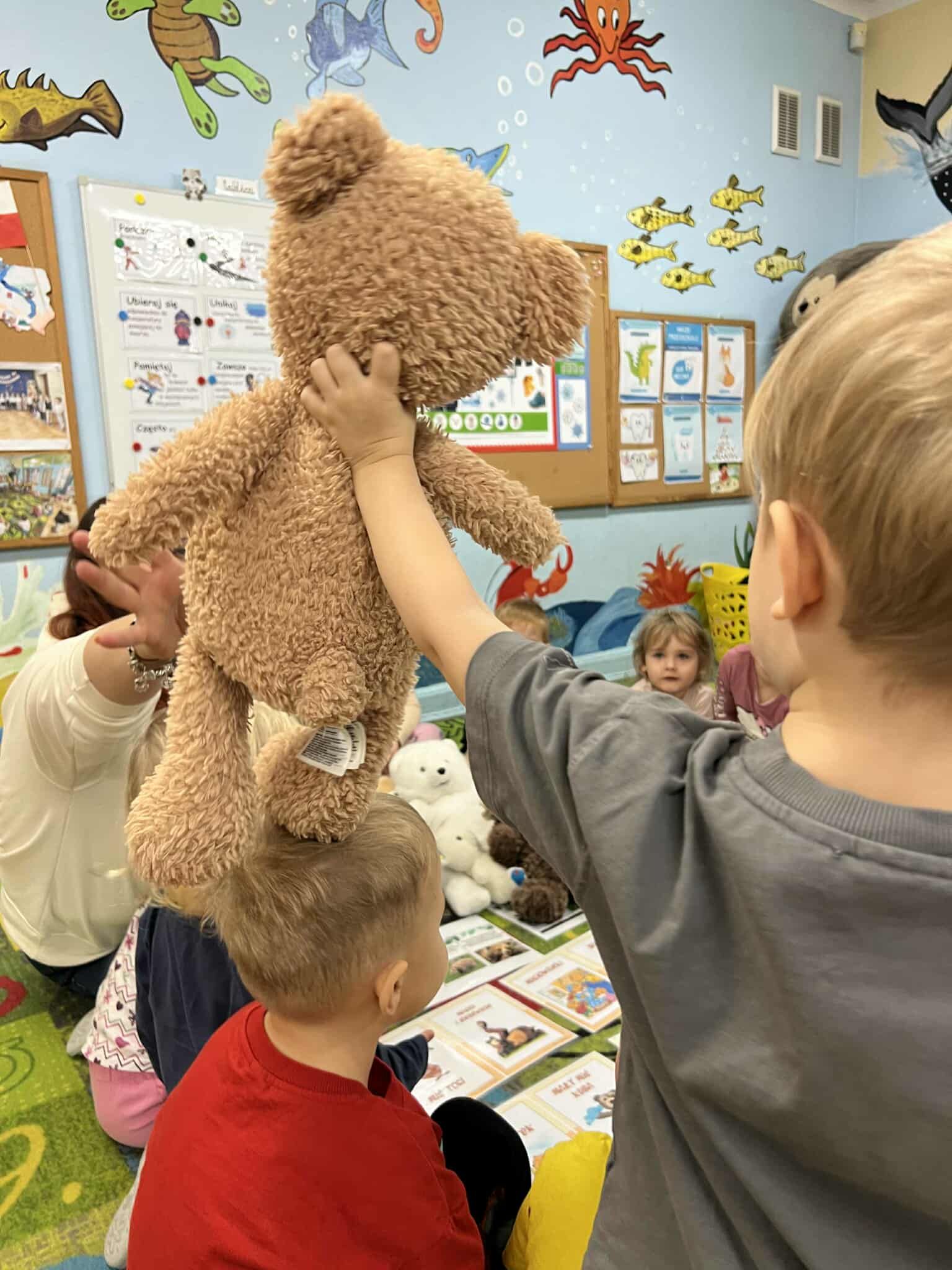 Dziś obchodziliśmy Dzień Pluszowego Misia. Poznaliśmy różne misie z bajek, o których wspólnie rozmawialiśmy. Była także wesoła zabawa – razem tańczyliśmy, naśladując nasze ulubione pluszaki. Malowaliśmy farbami, tworząc kolorowe misiowe maski. Uzupełnialiśmy brakujące elementy misia plasteliną, ćwicząc przy tym sprawność naszych palców. To był pełen radości i kreatywności dzień!