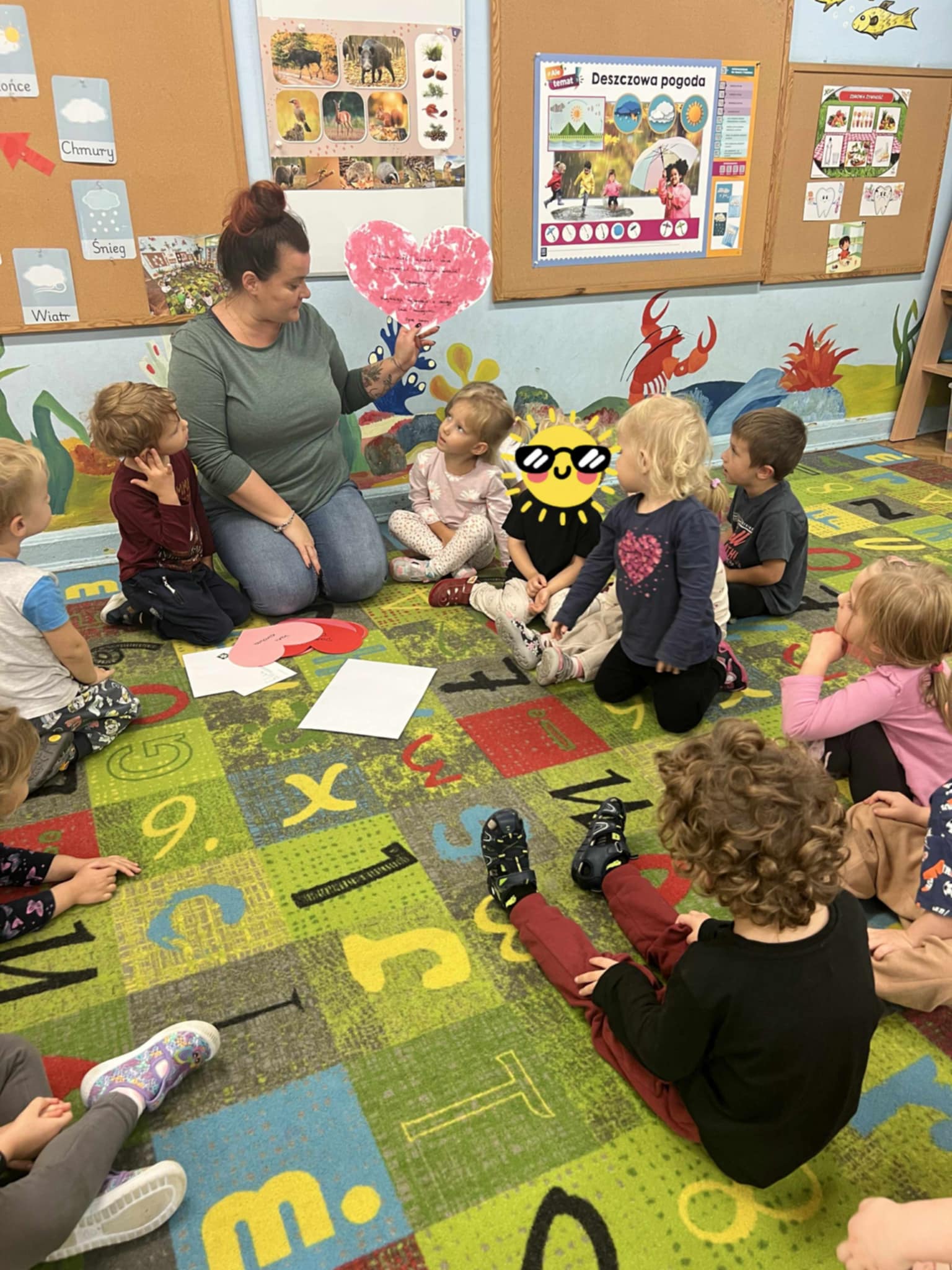 Na zakończenie wspólnie wykonaliśmy piękną laurkę, która już wkrótce trafi w ręce pracowników naszego przedszkola – jako podziękowanie za ich codzienną pracę i uśmiech.