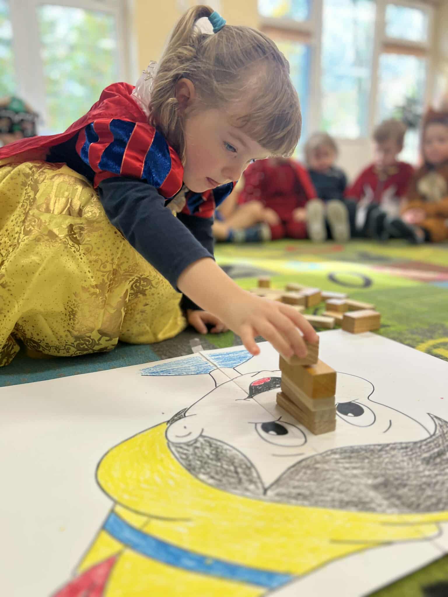 Dzieci celowały do celu, rozwijając swoją koordynację i zręczność, układały wieże z drewnianych klocków, ćwicząc cierpliwość i współpracę. Wspólnie układały obrazki według przeznaczenia i kategorii, ucząc się rozpoznawania postaci i przedmiotów z różnych bajek.