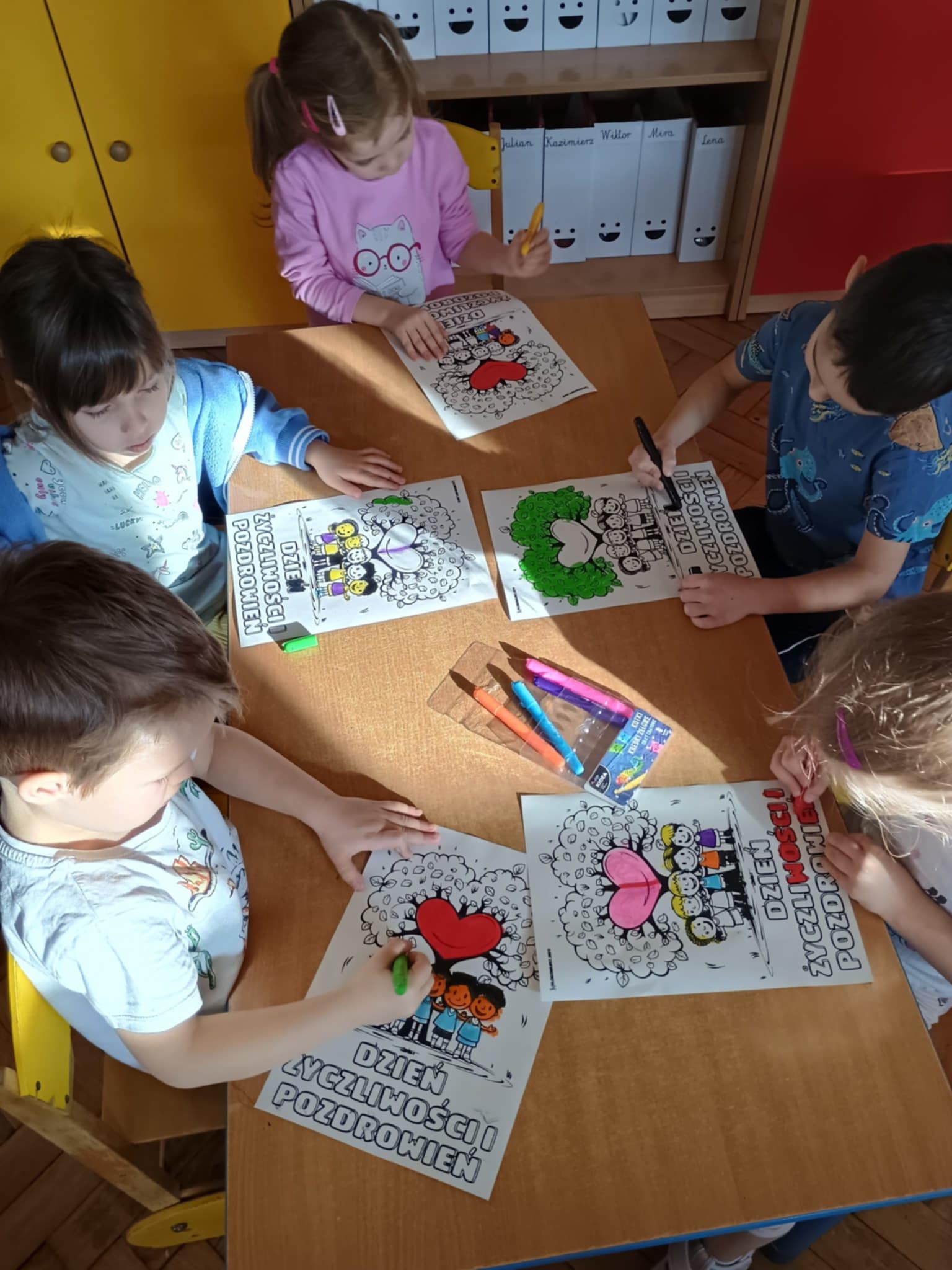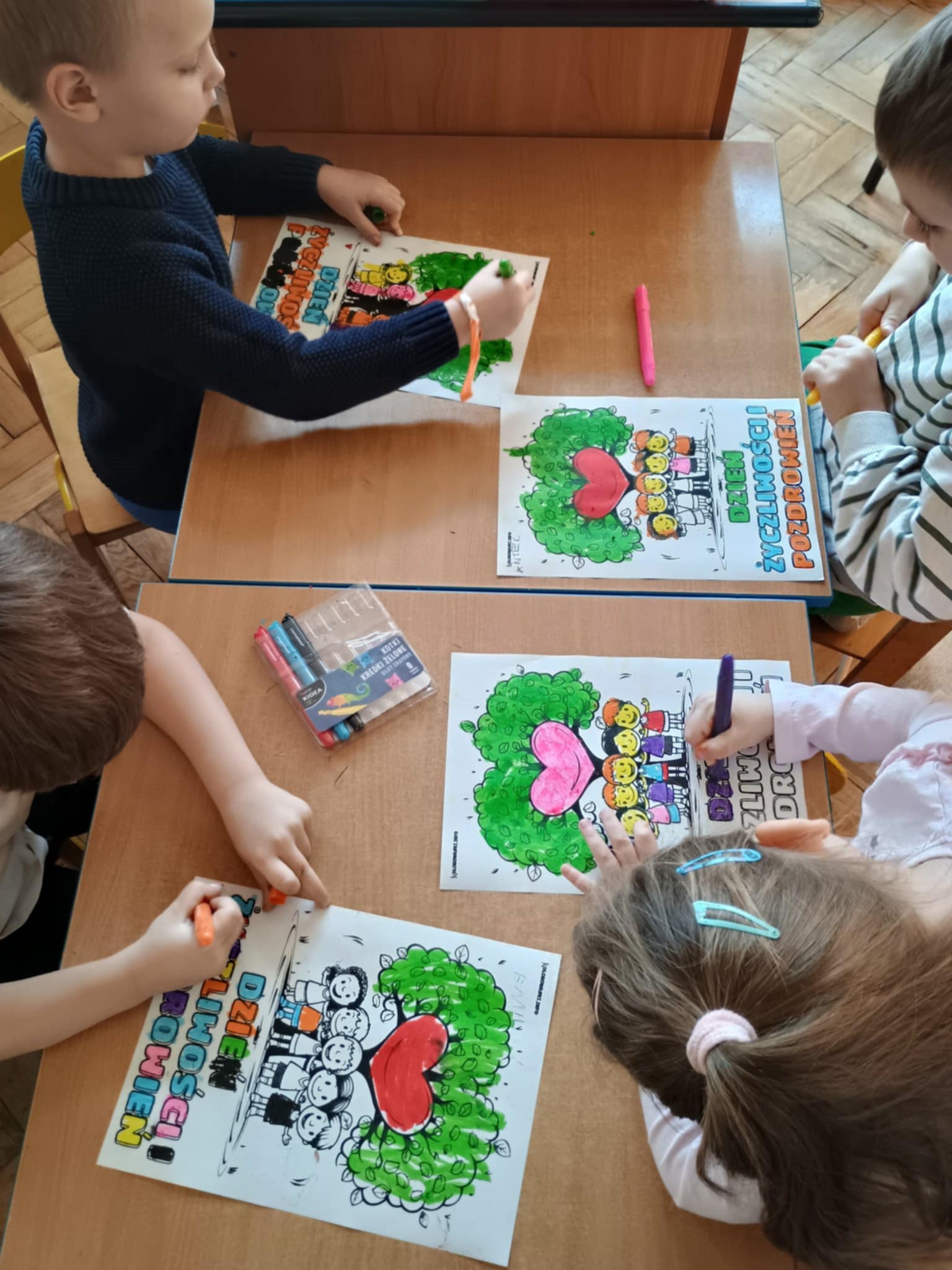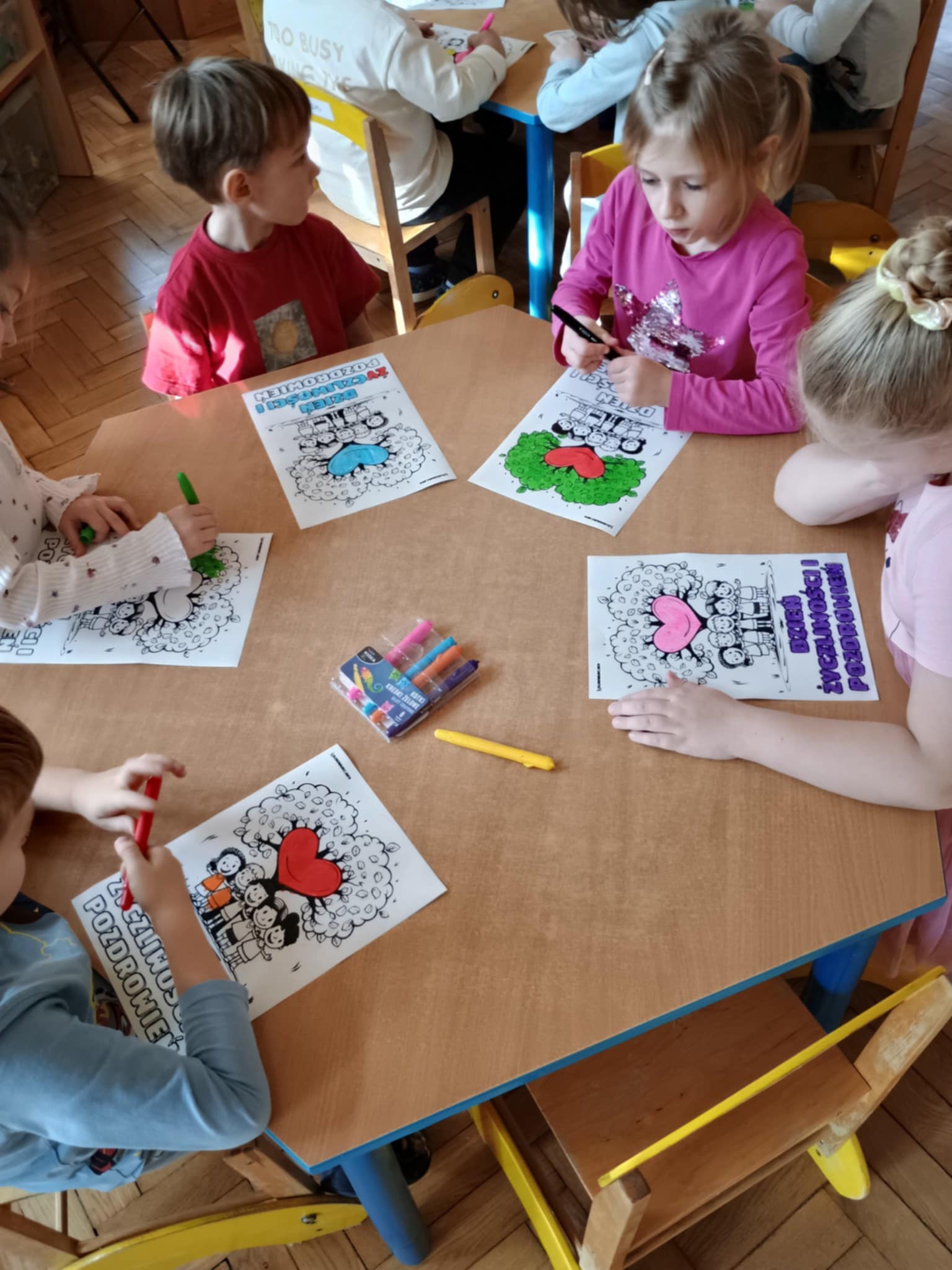 21 listopada obchodziliśmy dzień życzliwości. Działania nie ograniczyły się tylko do jednego dnia. O życzliwości rozmawialiśmy przez cały tydzień. Obejrzeliśmy prezentację multimedialną, poznaliśmy historię tego dnia. Na koniec zajęć pokolorowaliśmy obrazki żelowymi kredkami. Przekazywaliśmy też sobie dobre słowo.