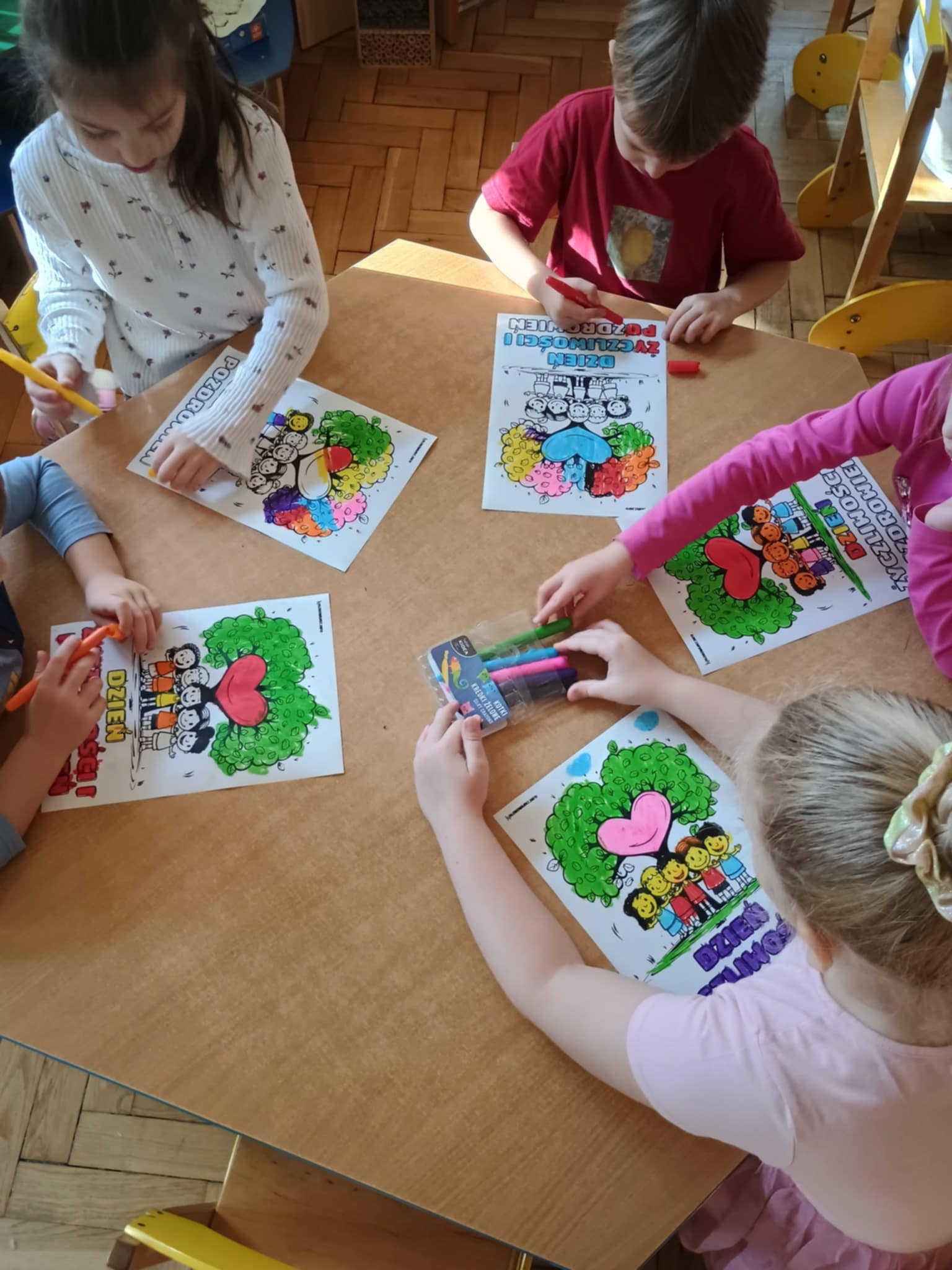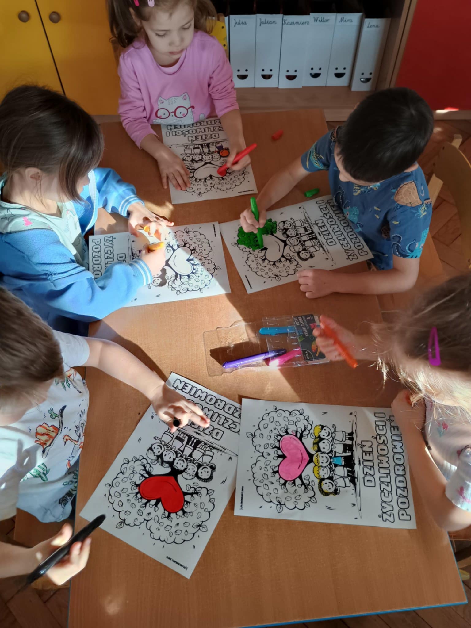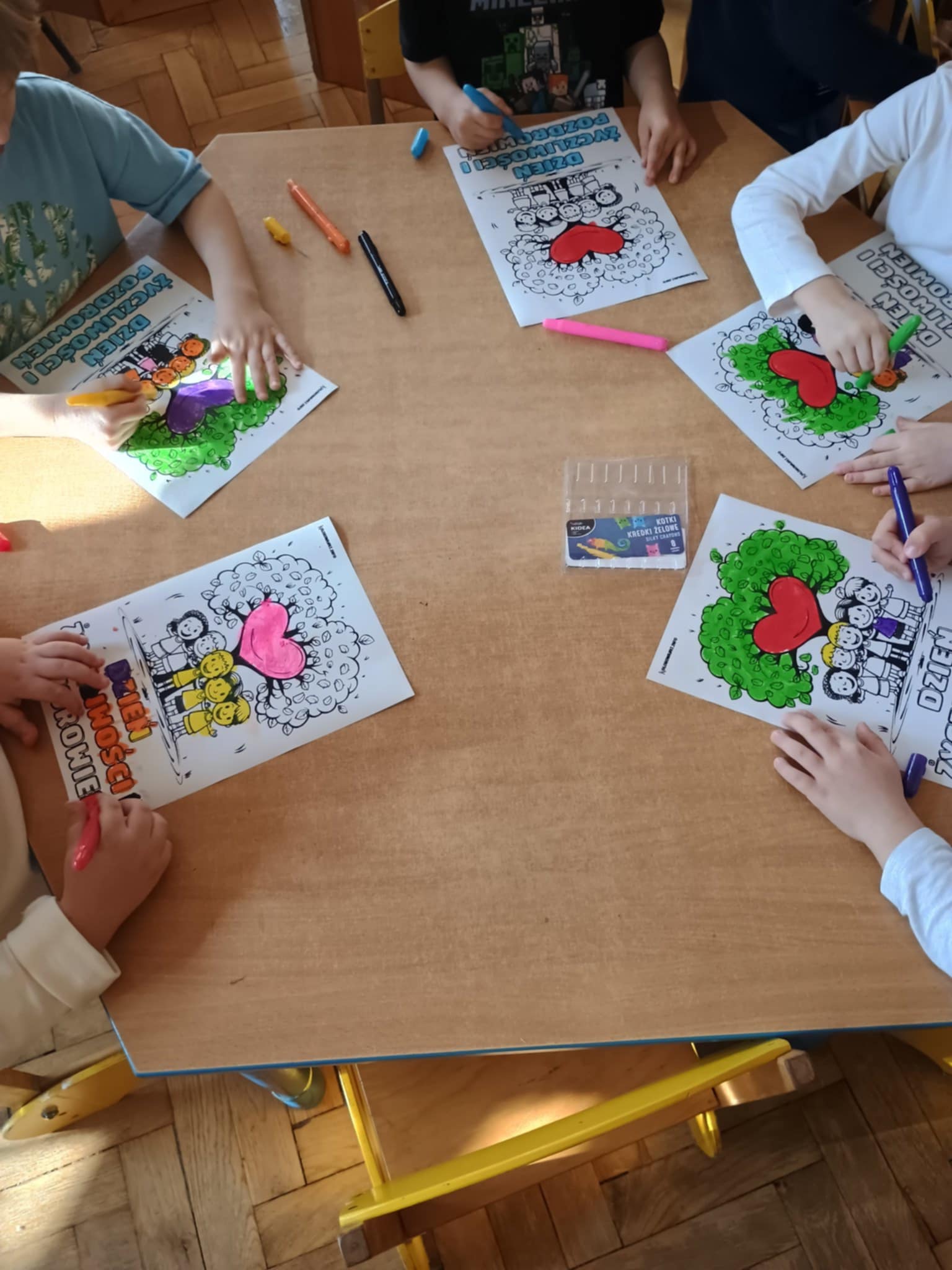 21 listopada obchodziliśmy dzień życzliwości. Działania nie ograniczyły się tylko do jednego dnia. O życzliwości rozmawialiśmy przez cały tydzień. Obejrzeliśmy prezentację multimedialną, poznaliśmy historię tego dnia. Na koniec zajęć pokolorowaliśmy obrazki żelowymi kredkami. Przekazywaliśmy też sobie dobre słowo.