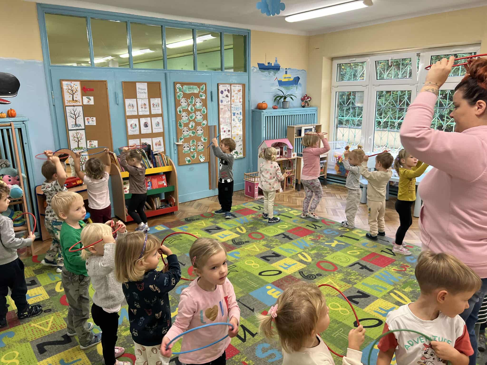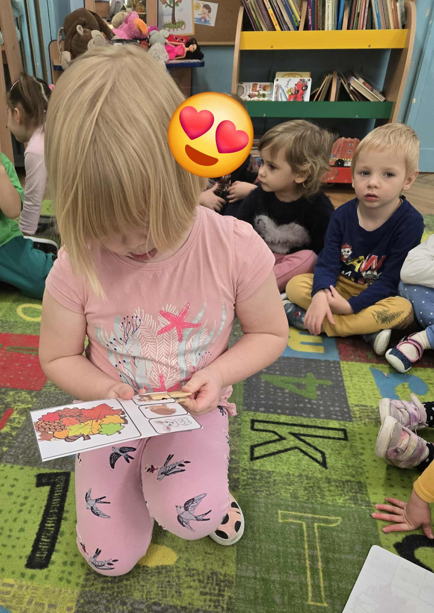 W trakcie zabaw dydaktycznych przedszkolaki utrwalały wiadomości o leśnych zwierzętach – ich wyglądzie, zwyczajach i przygotowaniach do zimy. Bawiły się także w gry ruchowe, w których ćwiczyły orientację w przestrzeni i rozumienie kierunków (np. w prawo, w lewo, do przodu, do tyłu).
