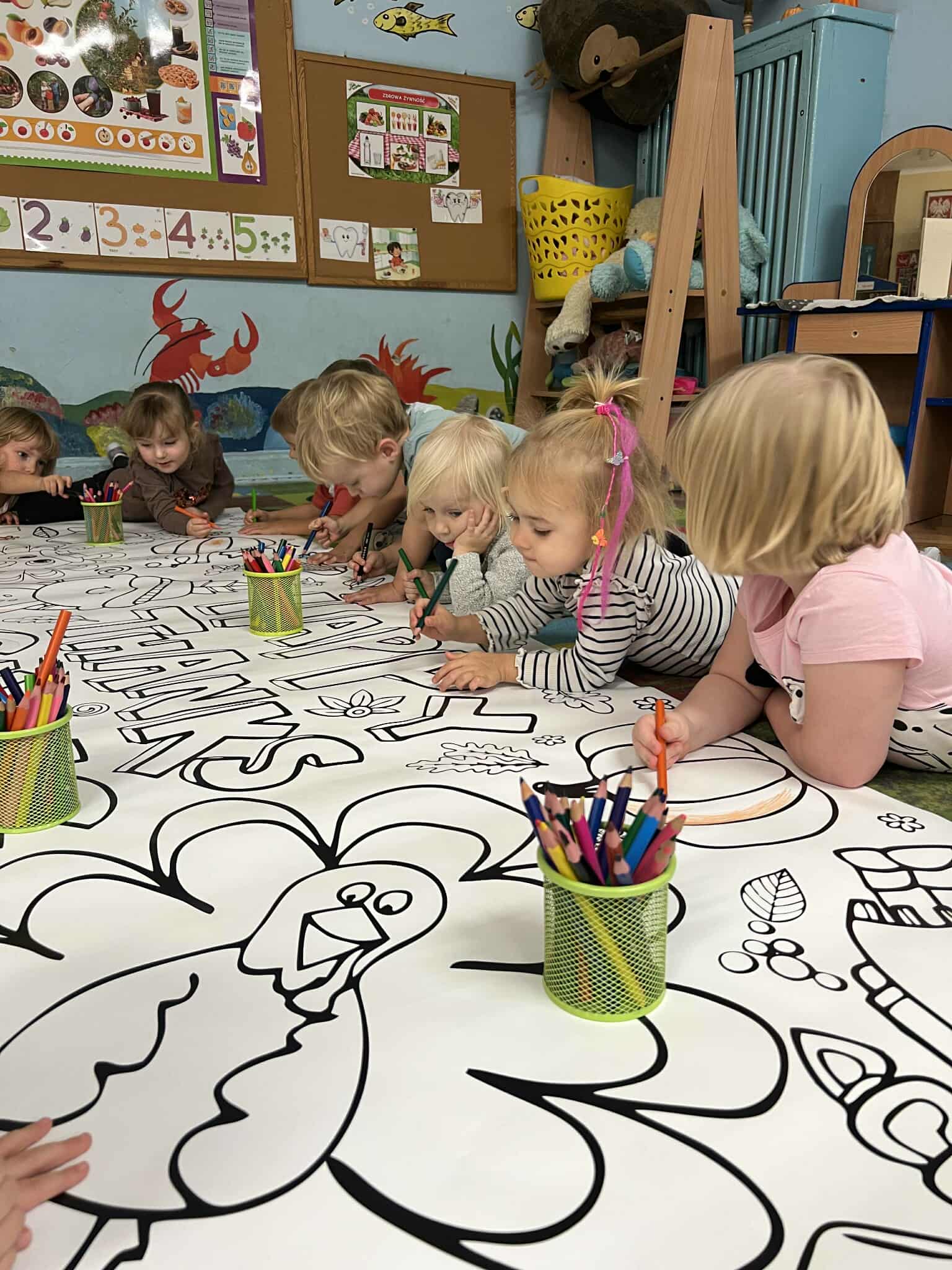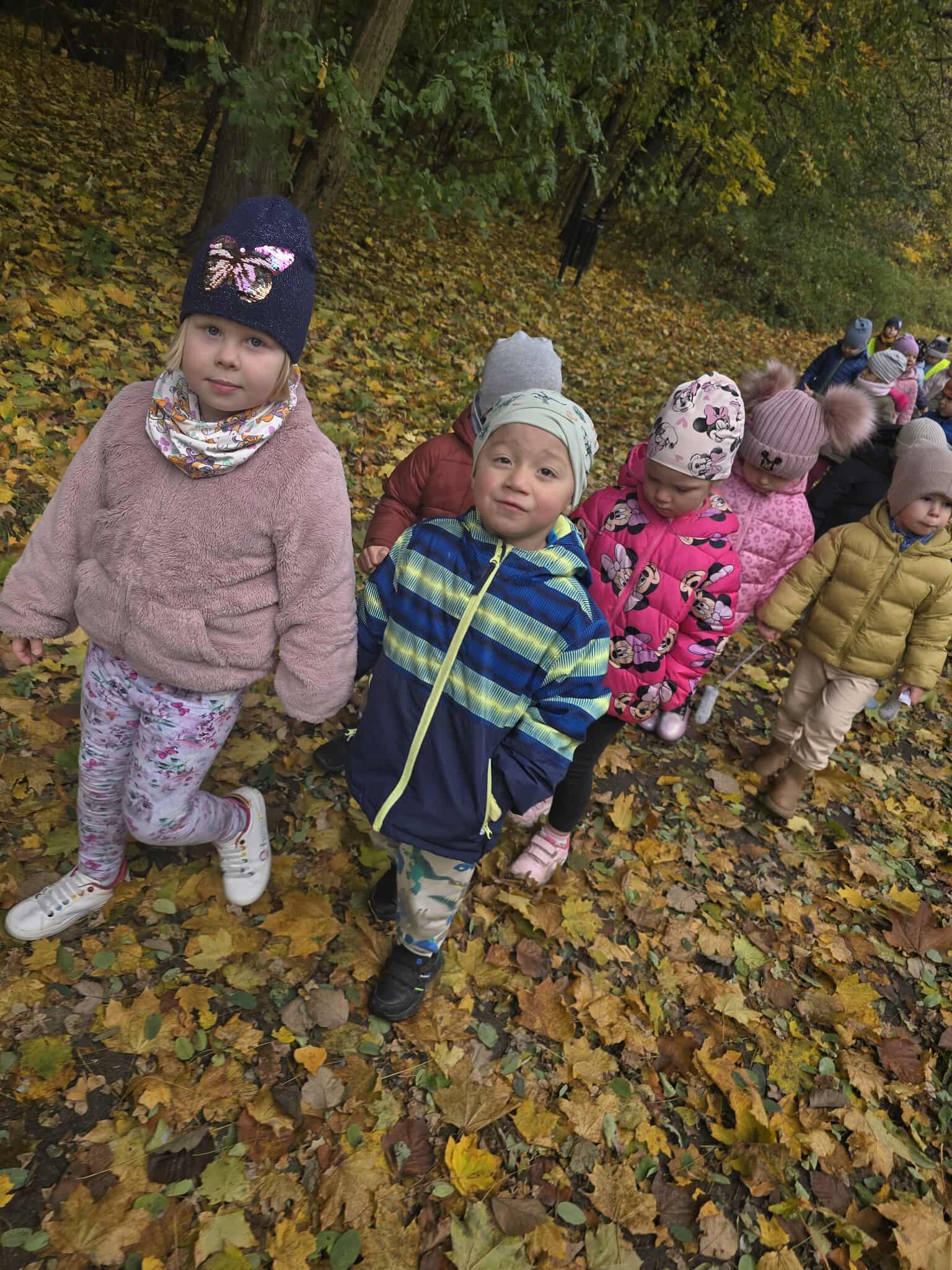 W tym tygodniu przedszkolaki wybrały się na długi spacer w poszukiwaniu oznak jesieni. Dzieci obserwowały zmiany zachodzące w przyrodzie – spadające liście, kasztany, żołędzie oraz przygotowania zwierząt do zimy.