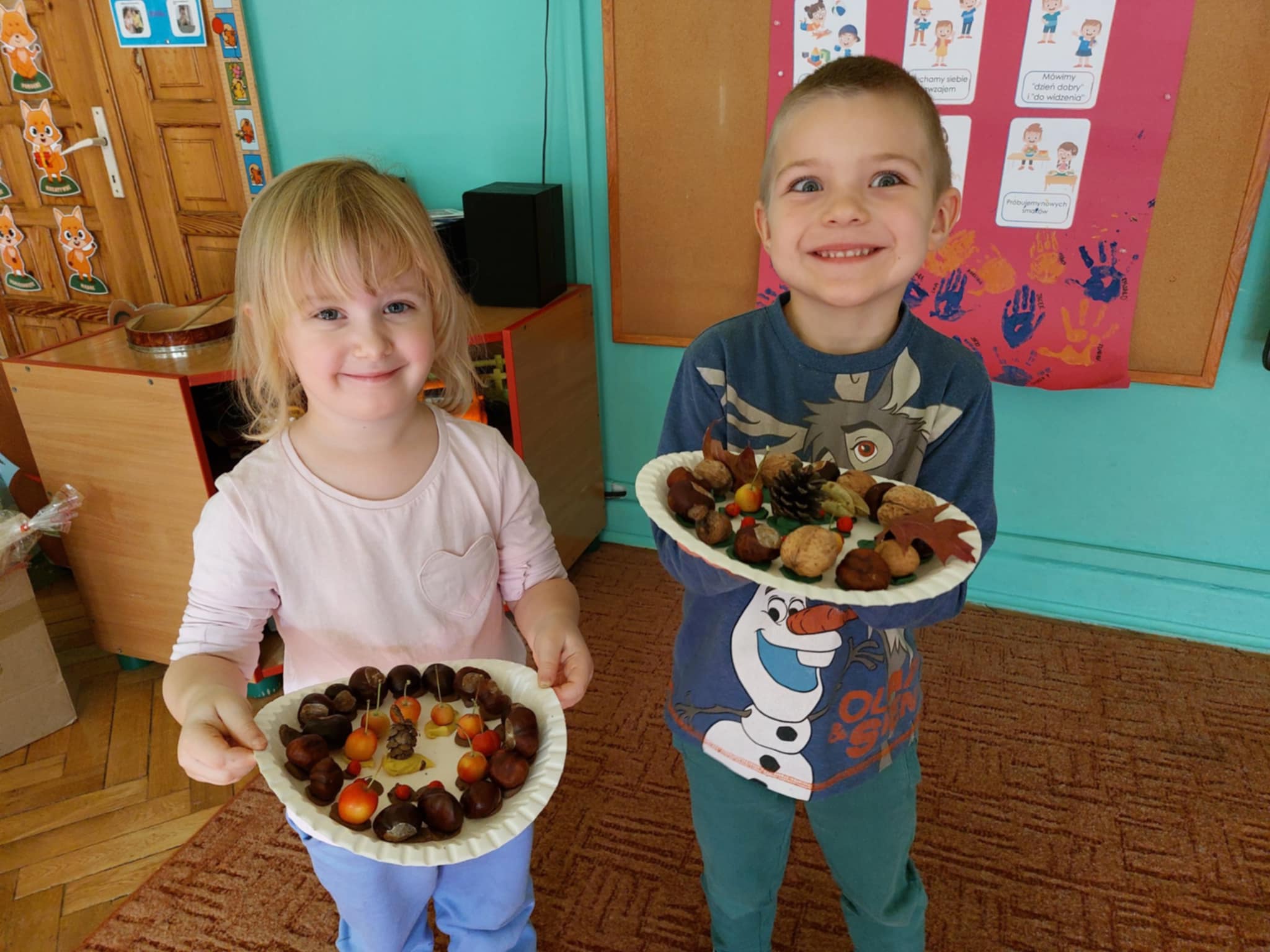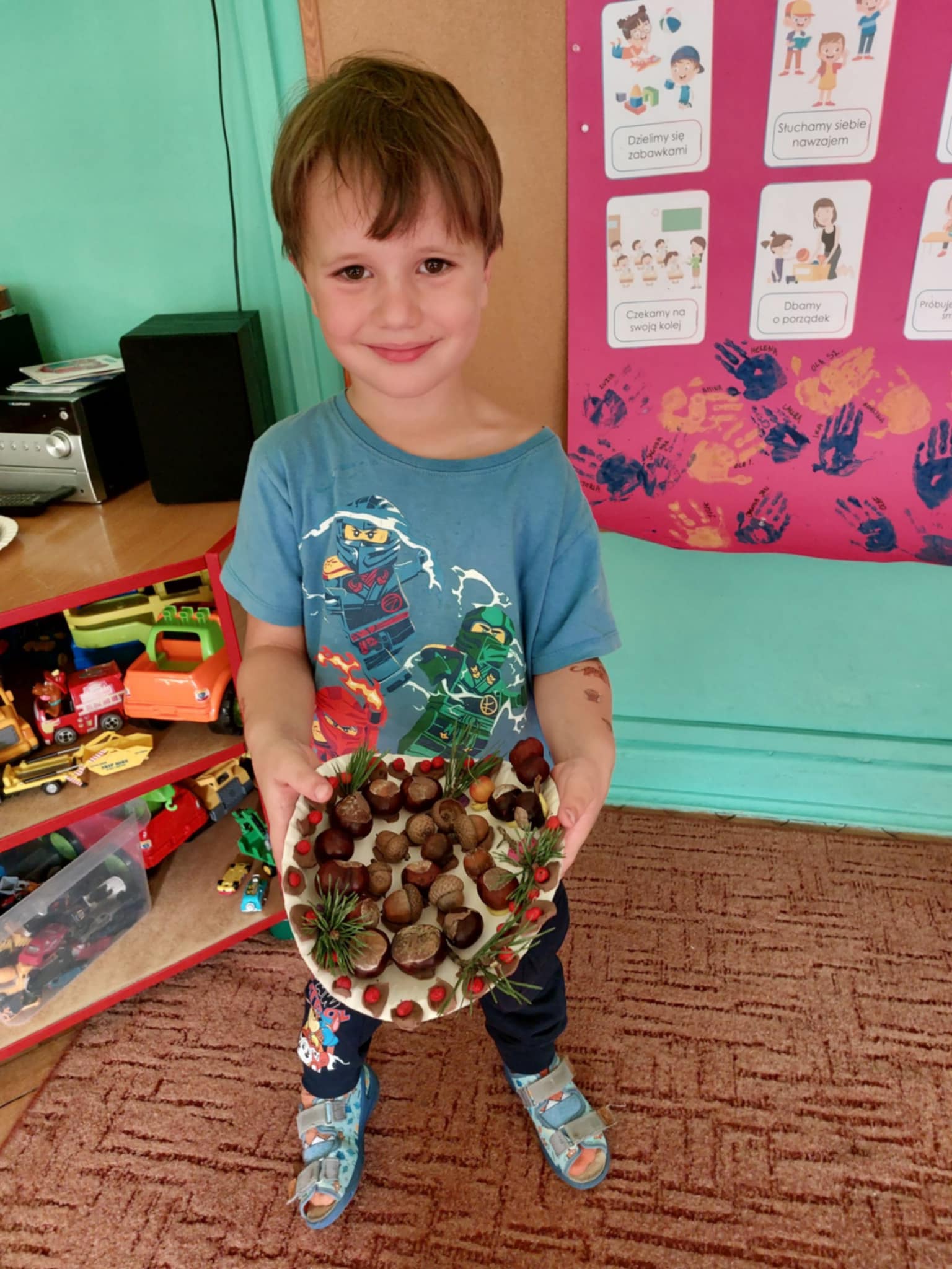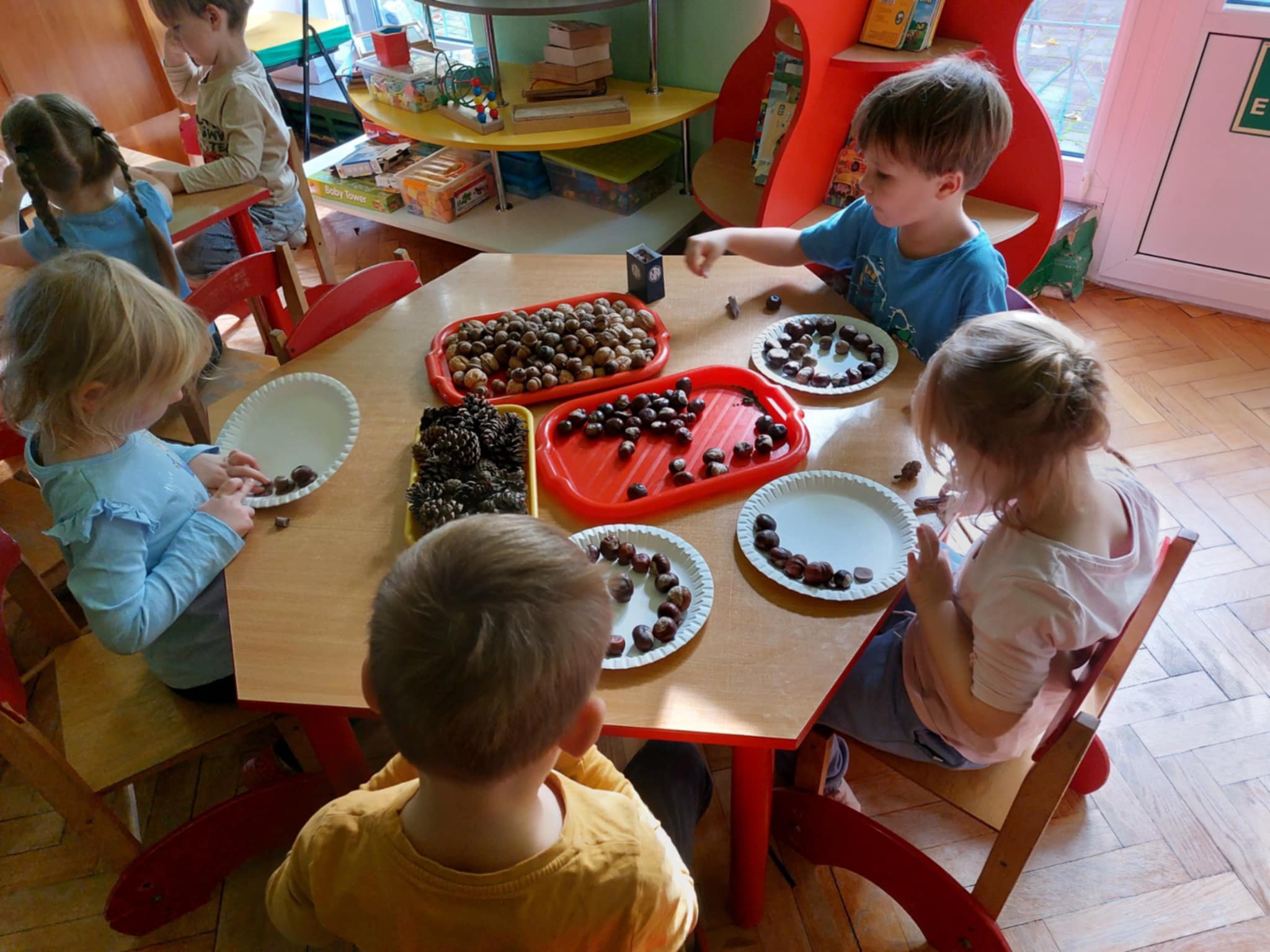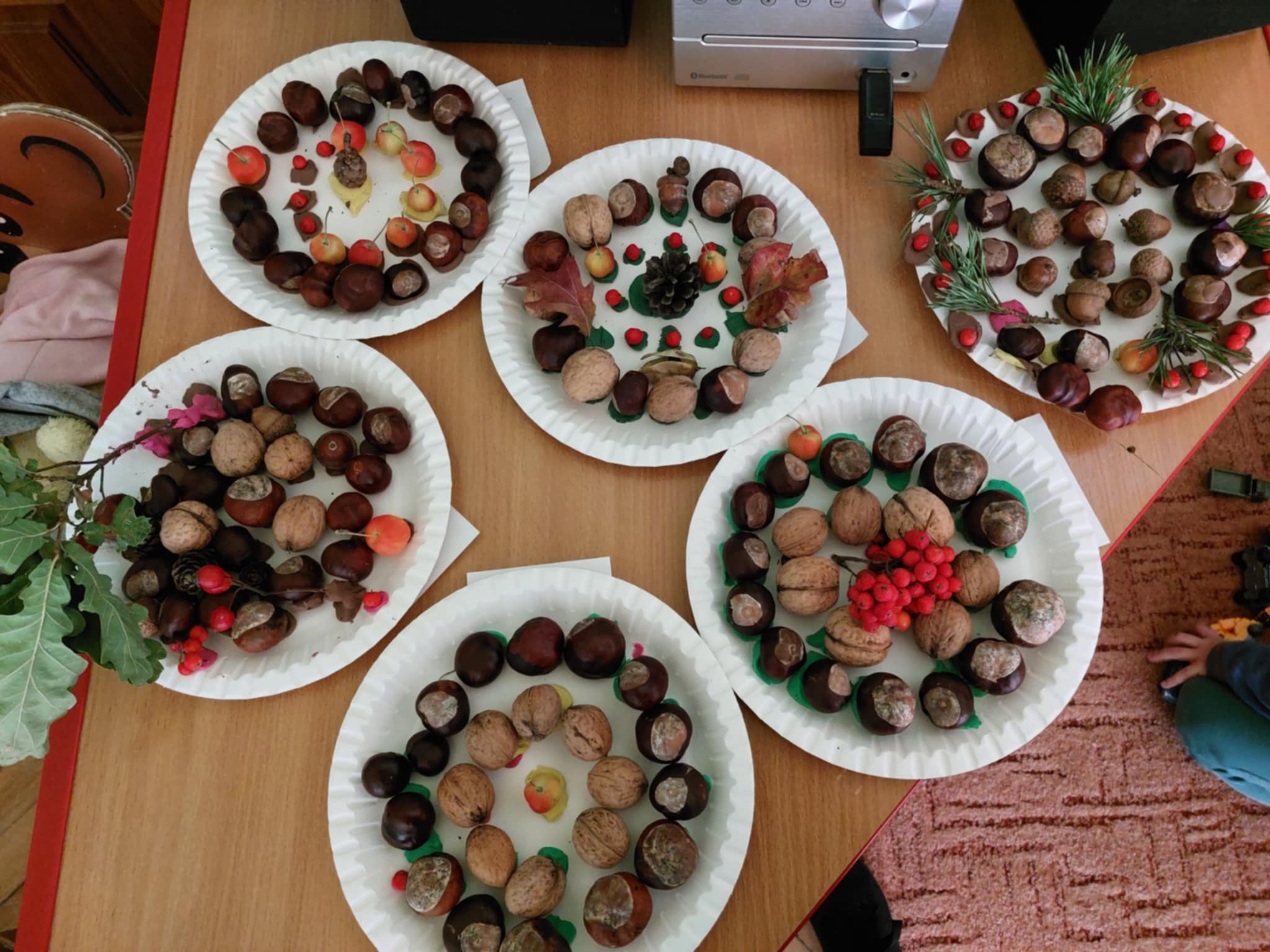 Jesień to niezwykle kolorowa i inspirująca pora roku! Grupa Lisków postanowiła wykorzystać jej uroki, tworząc wyjątkowe mandale z darów jesieni. Dzieci z zaangażowaniem układały wzory z kasztanów, żołędzi, liści, szyszek oraz jarzębiny, rozwijając przy tym swoją kreatywność, spostrzegawczość i poczucie estetyki.