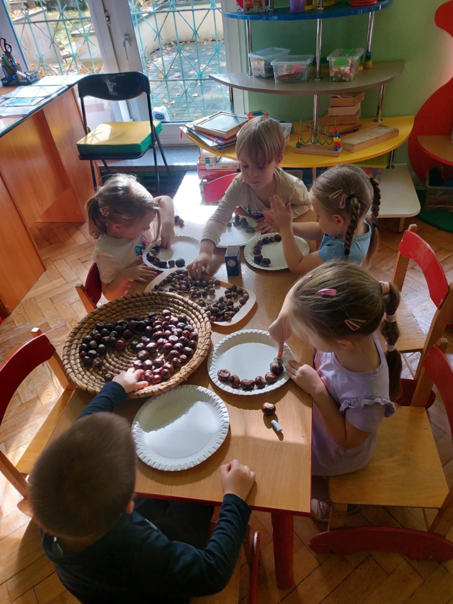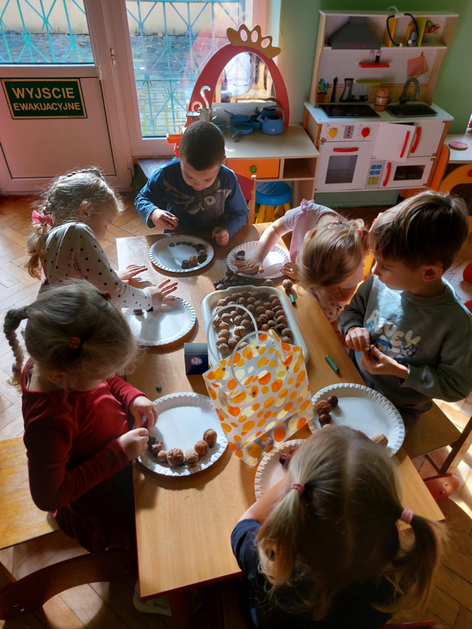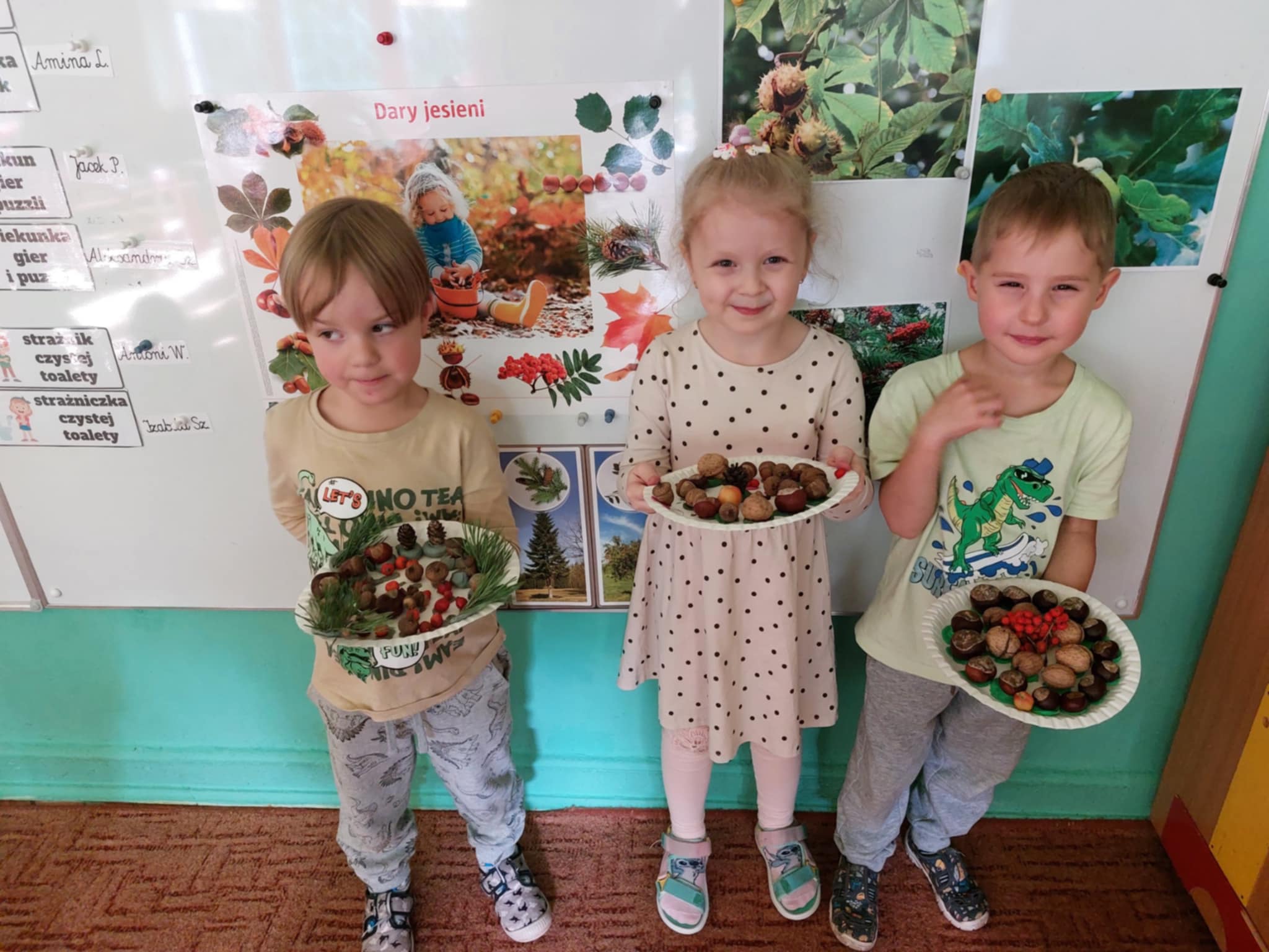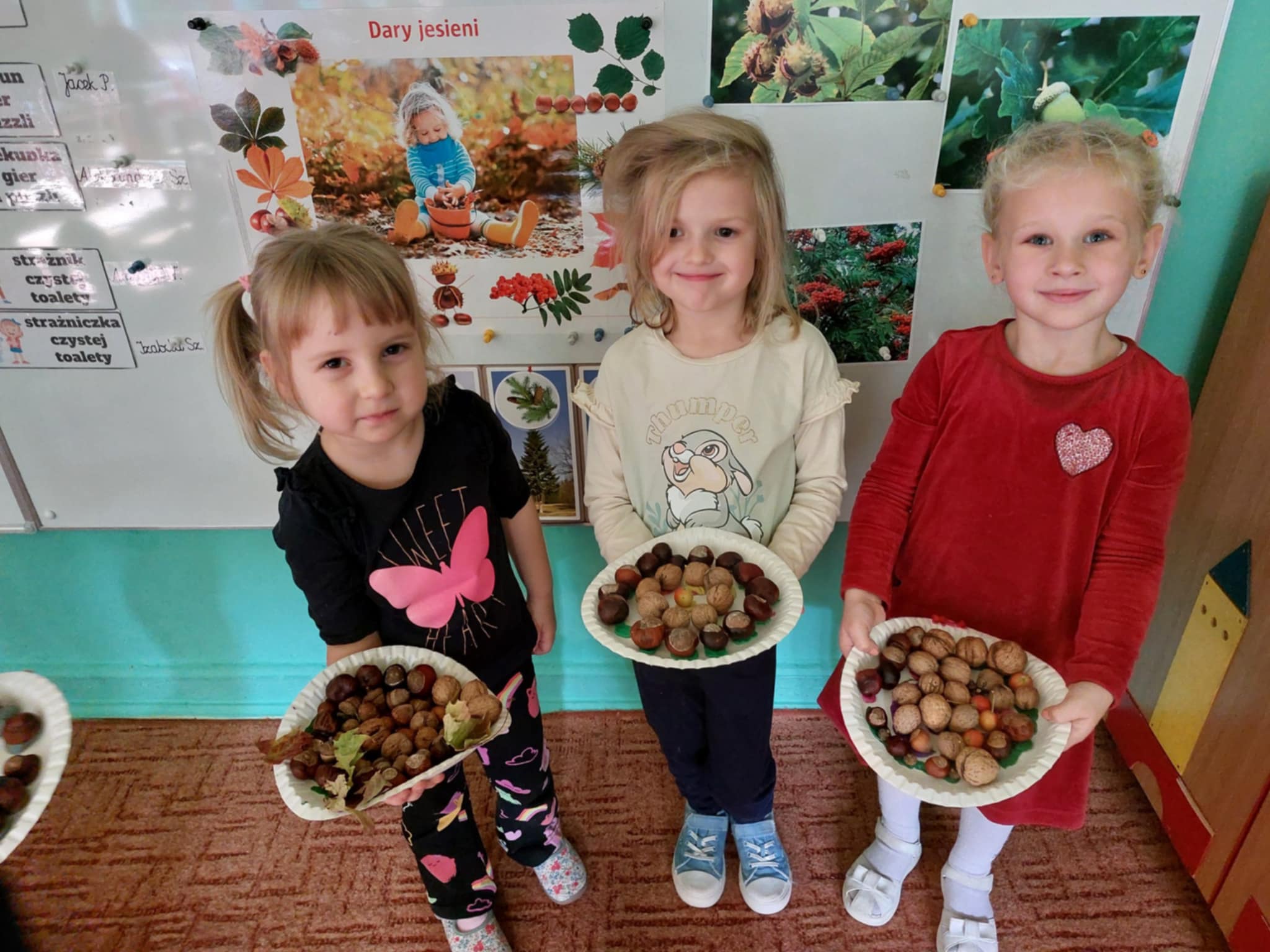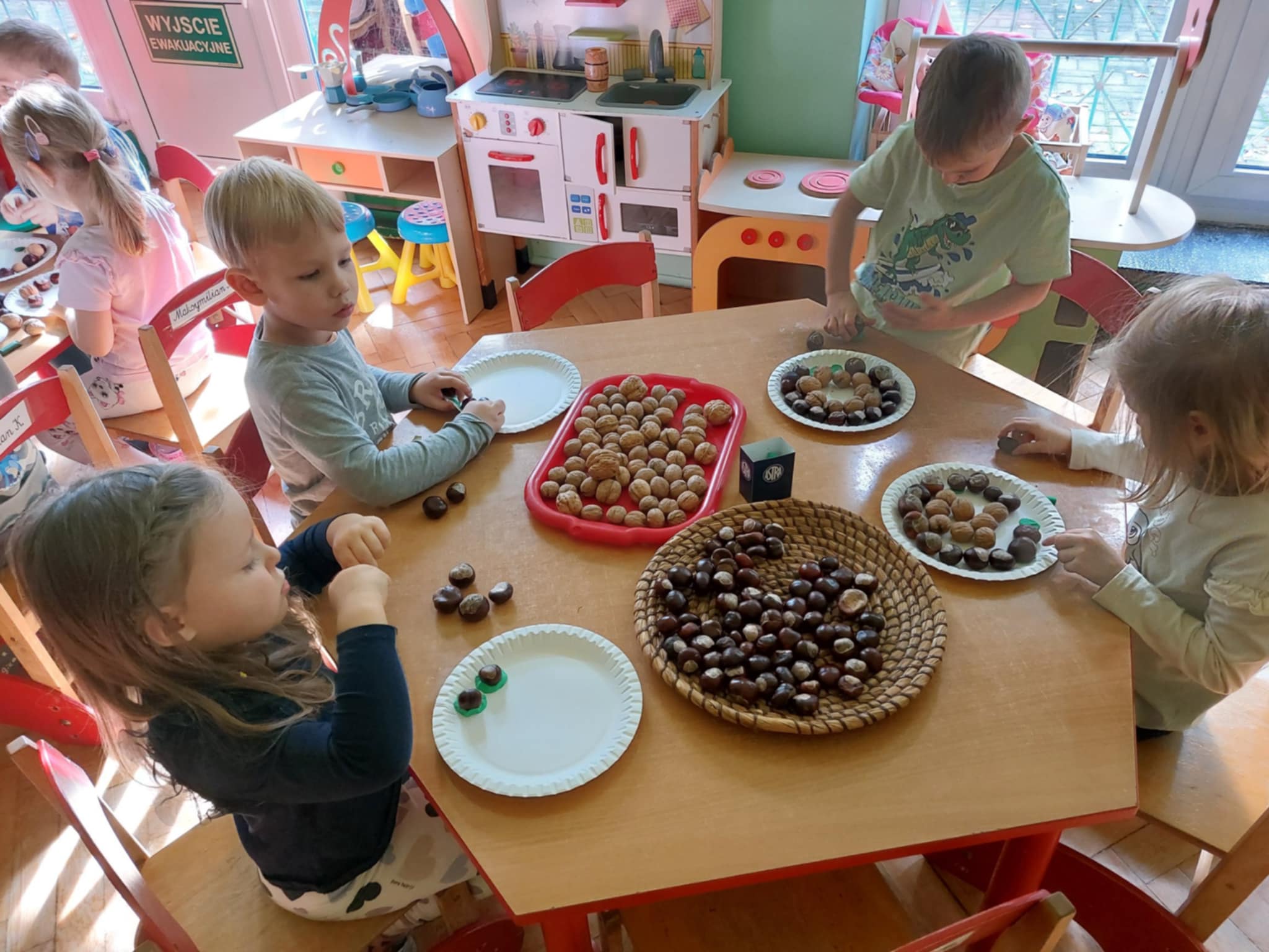 Jesień to niezwykle kolorowa i inspirująca pora roku! Grupa Lisków postanowiła wykorzystać jej uroki, tworząc wyjątkowe mandale z darów jesieni. Dzieci z zaangażowaniem układały wzory z kasztanów, żołędzi, liści, szyszek oraz jarzębiny, rozwijając przy tym swoją kreatywność, spostrzegawczość i poczucie estetyki.