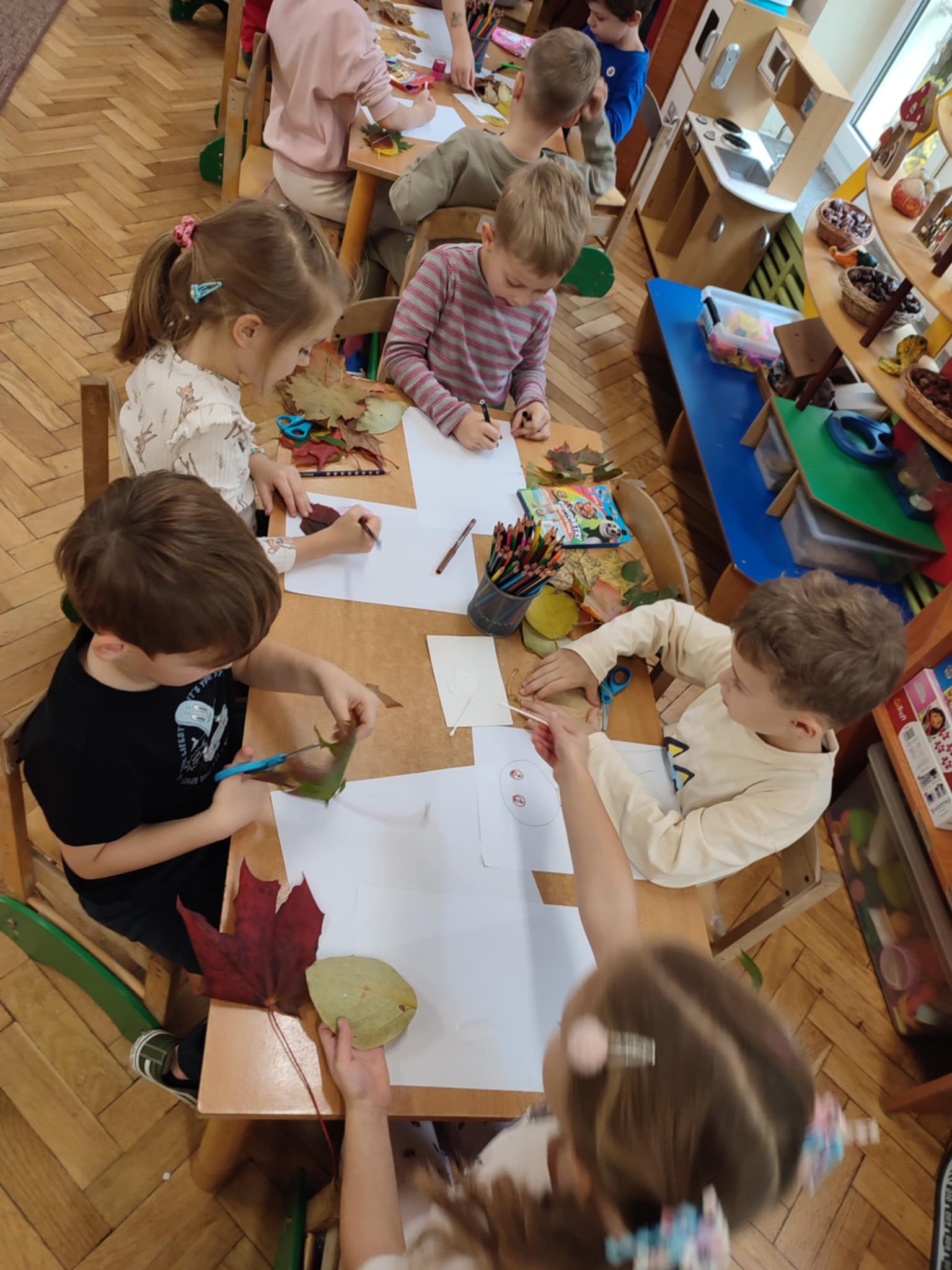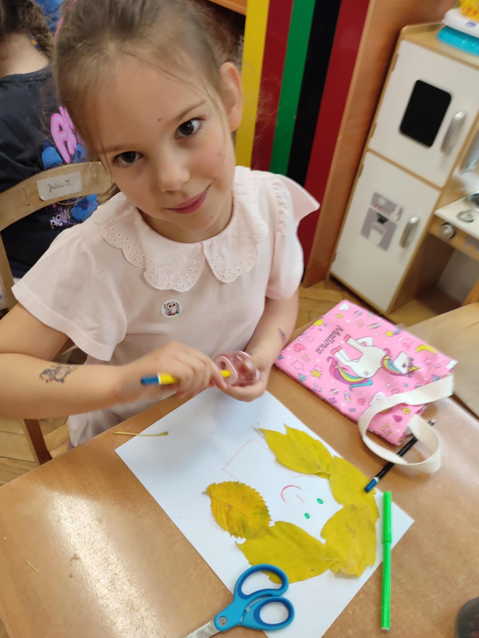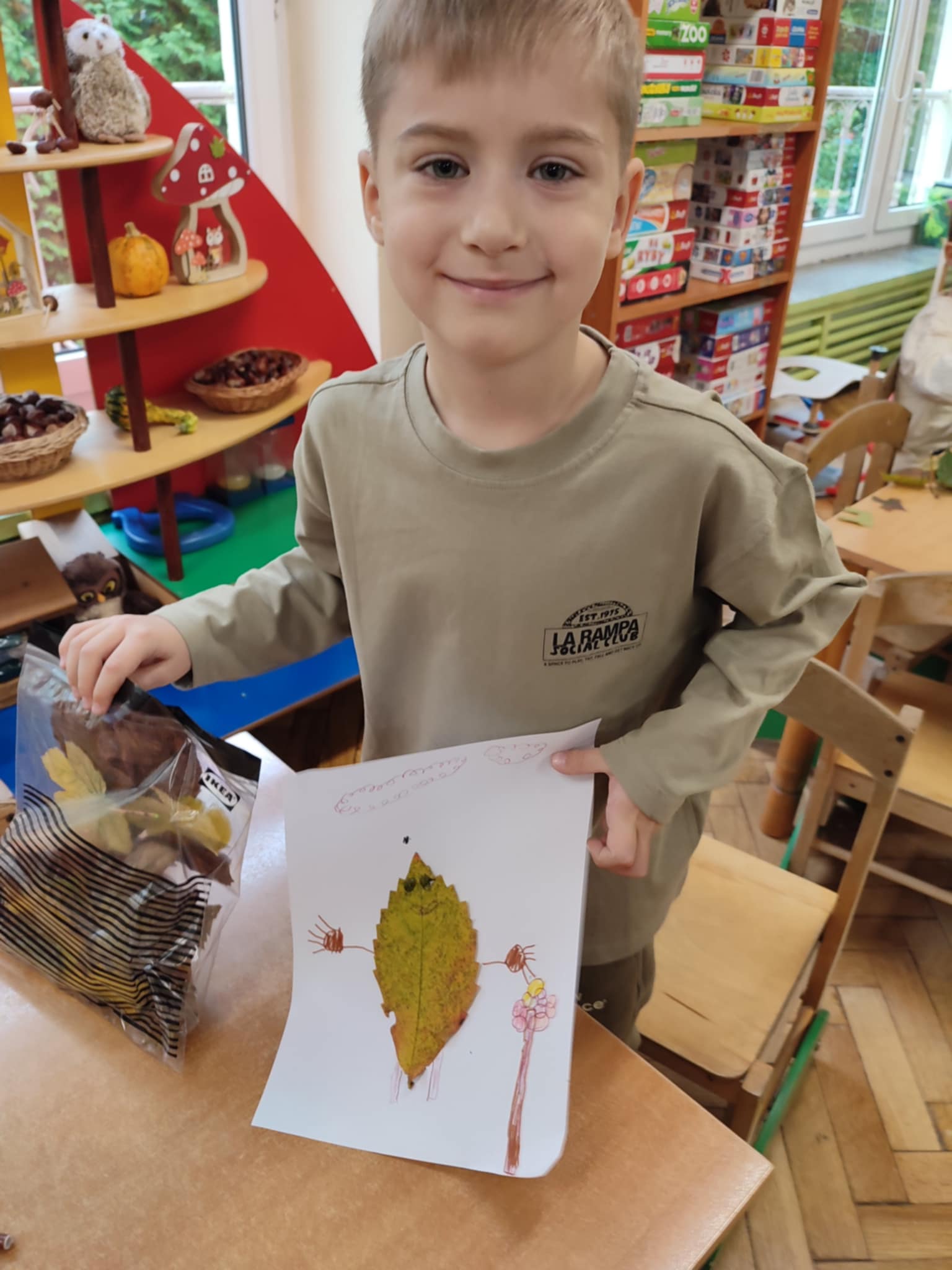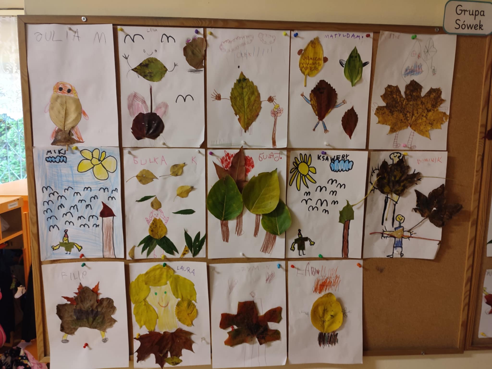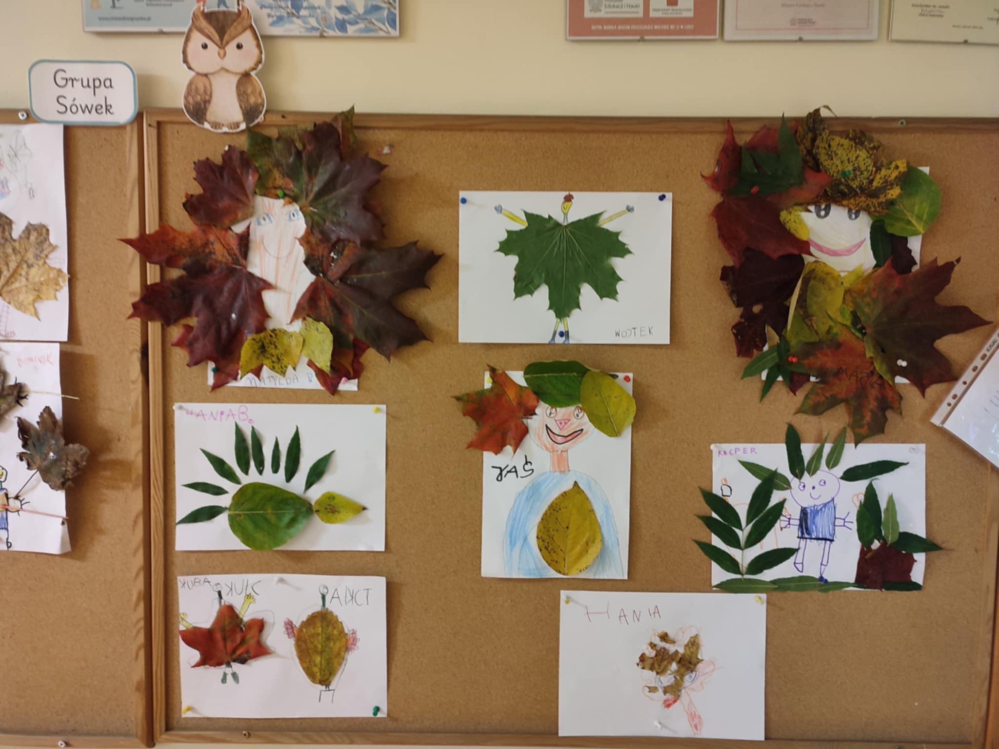 Jesień przyniosła do naszej sali dużo kolorowych liści, kasztanów i innych skarbów, które zamieniliśmy w piękne prace plastyczne. Z liści powstały jeżyki, ludziki i różne jesienne cuda. Wyklejaliśmy, przyklejaliśmy, tworzyliśmy i świetnie się przy tym bawiliśmy!