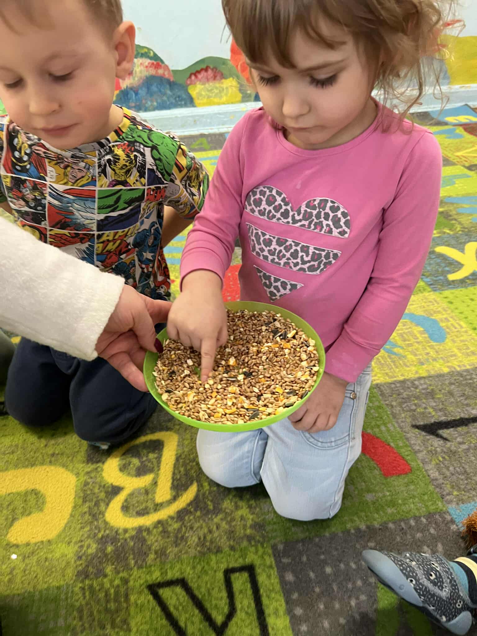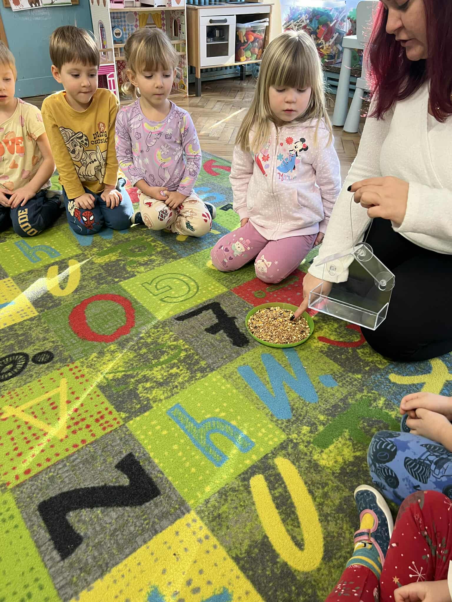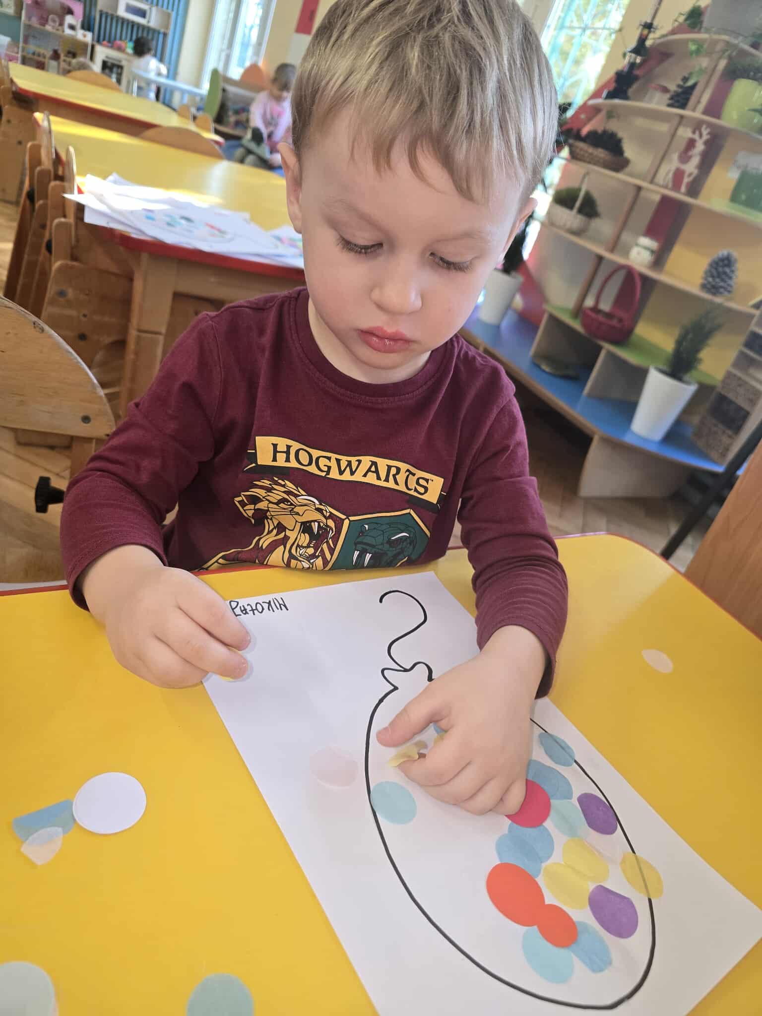 W tym tygodniu dzieci, rozmawiając o karnawale, utrwalały nazwy kolorów, ćwiczyły segregowanie oraz bawiły się figurami geometrycznymi. Aktywnie uczestniczyły w zabawach logopedycznych, rozwijając swoją mowę i umiejętności komunikacyjne. Udało nam się również stworzyć własny karmnik dla ptaków, który możemy codziennie obserwować, ucząc się troski o zwierzęta. Pozostając w duchu pomagania, wzięliśmy udział w Wielkiej Orkiestrze Świątecznej Pomocy. Wspólnie ze starszakami sumiennie dyżurowaliśmy z puszkami, ucząc się empatii i współpracy.