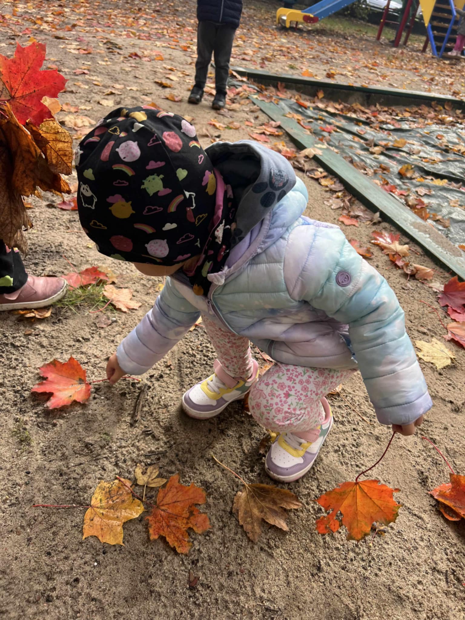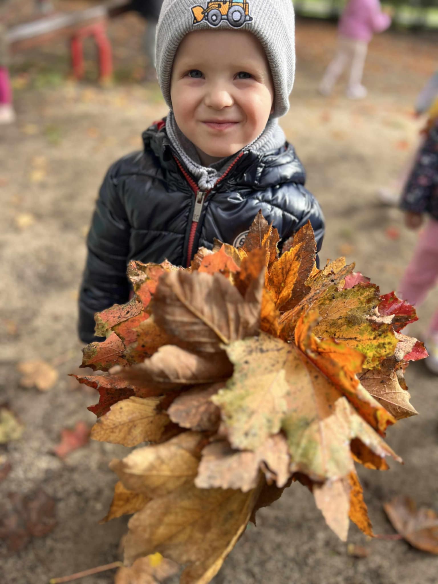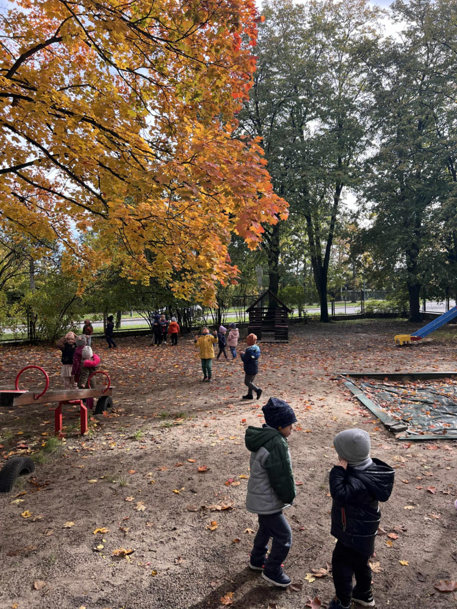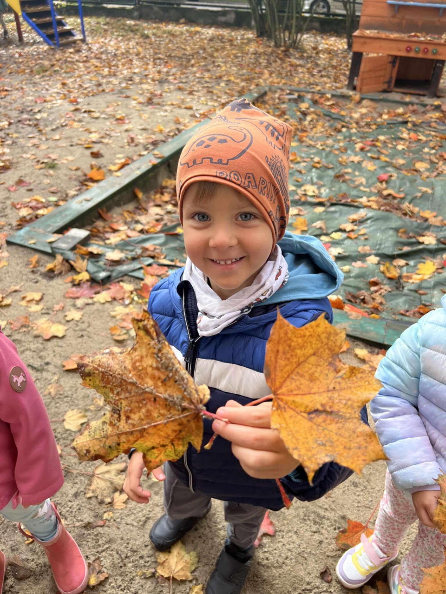 Wykorzystaliśmy promienie słońca do zabaw na świeżym powietrzu. Obserwowaliśmy zmieniającą się przyrodę – kolorowe liście, kasztany i żołędzie, które spadały z drzew.