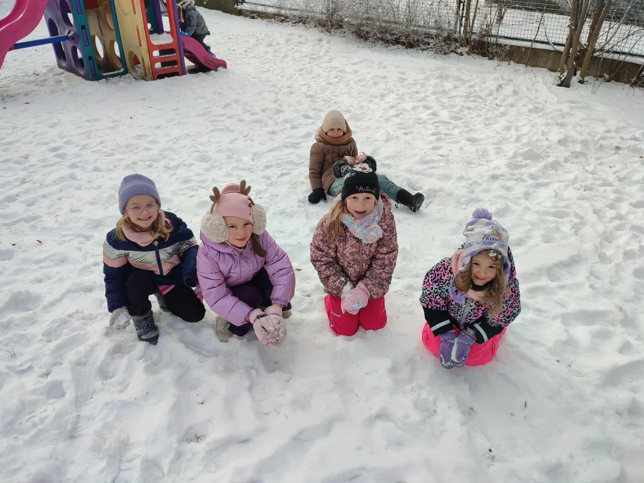Zima w pełni, a my cieszymy się każdym płatkiem śniegu! Korzystając z zimowej aury, bawiliśmy się na całego – zjeżdżaliśmy z „jabłuszek”, rzucaliśmy się śnieżkami, a na śniegu zostawiliśmy mnóstwo pięknych aniołków. Mimo mrozu nasze uśmiechy nie znikały z twarzy – bo przecież mróz nam nie straszny, gdy zabawa jest tak wspaniała! Uwielbiamy takie aktywne zimowe dni!