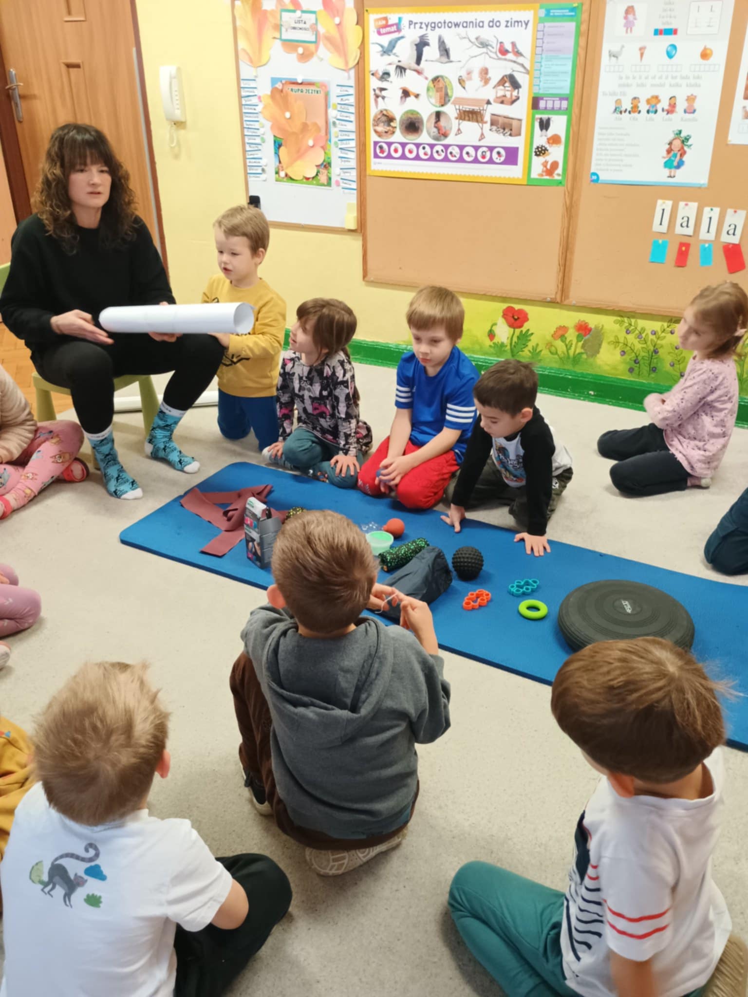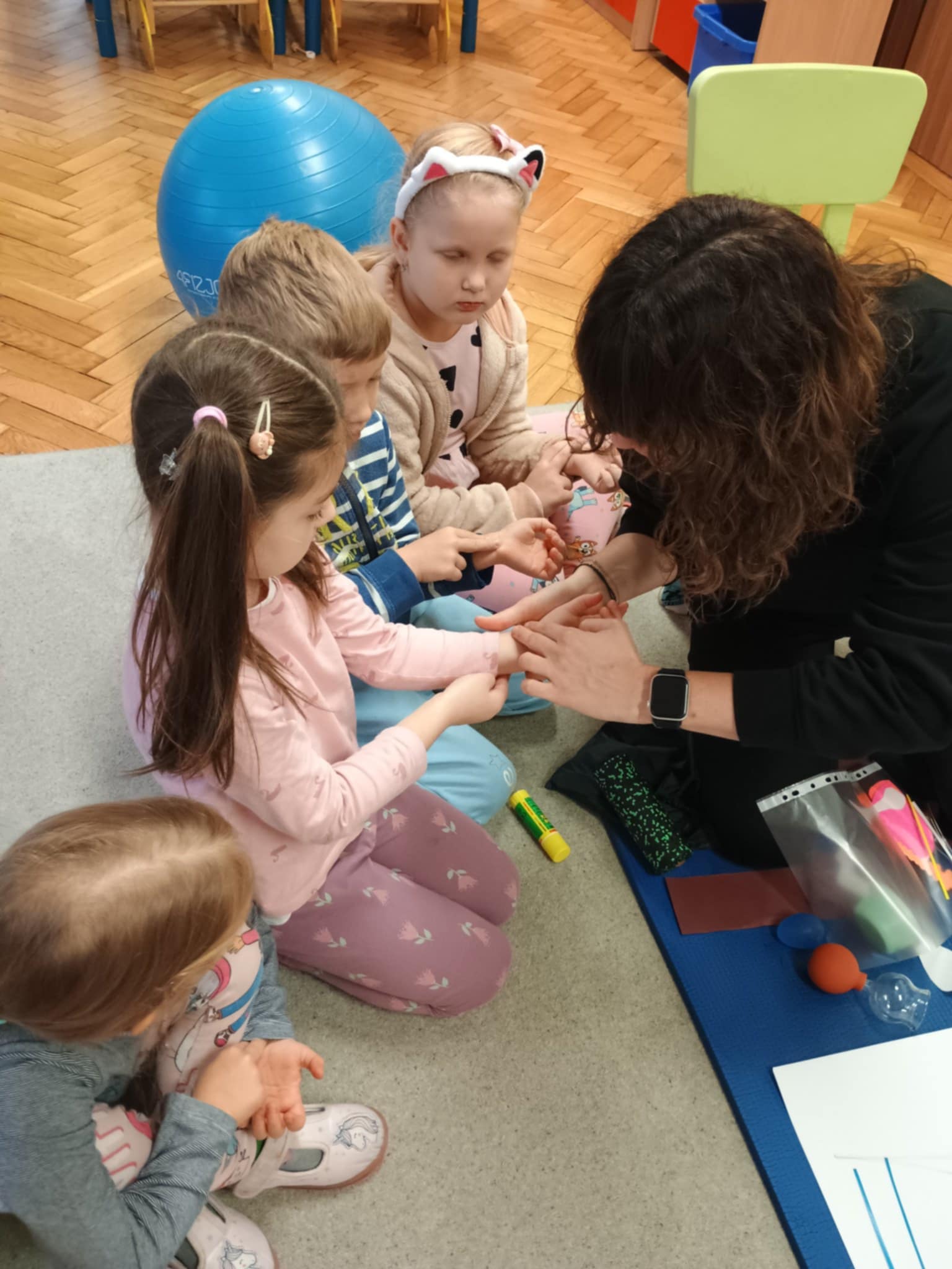 Dziś odwiedziła nas mama Ignacego, która opowiedziała nam o tym na czym polega zawód fizjoterapeuty. Mogliśmy zobaczyć niektóre sprzęty wykorzystywane podczas pracy. Wykonywaliśmy proste ćwiczenia. To były super zajęcia. Zapraszamy kolejnych rodziców! :)