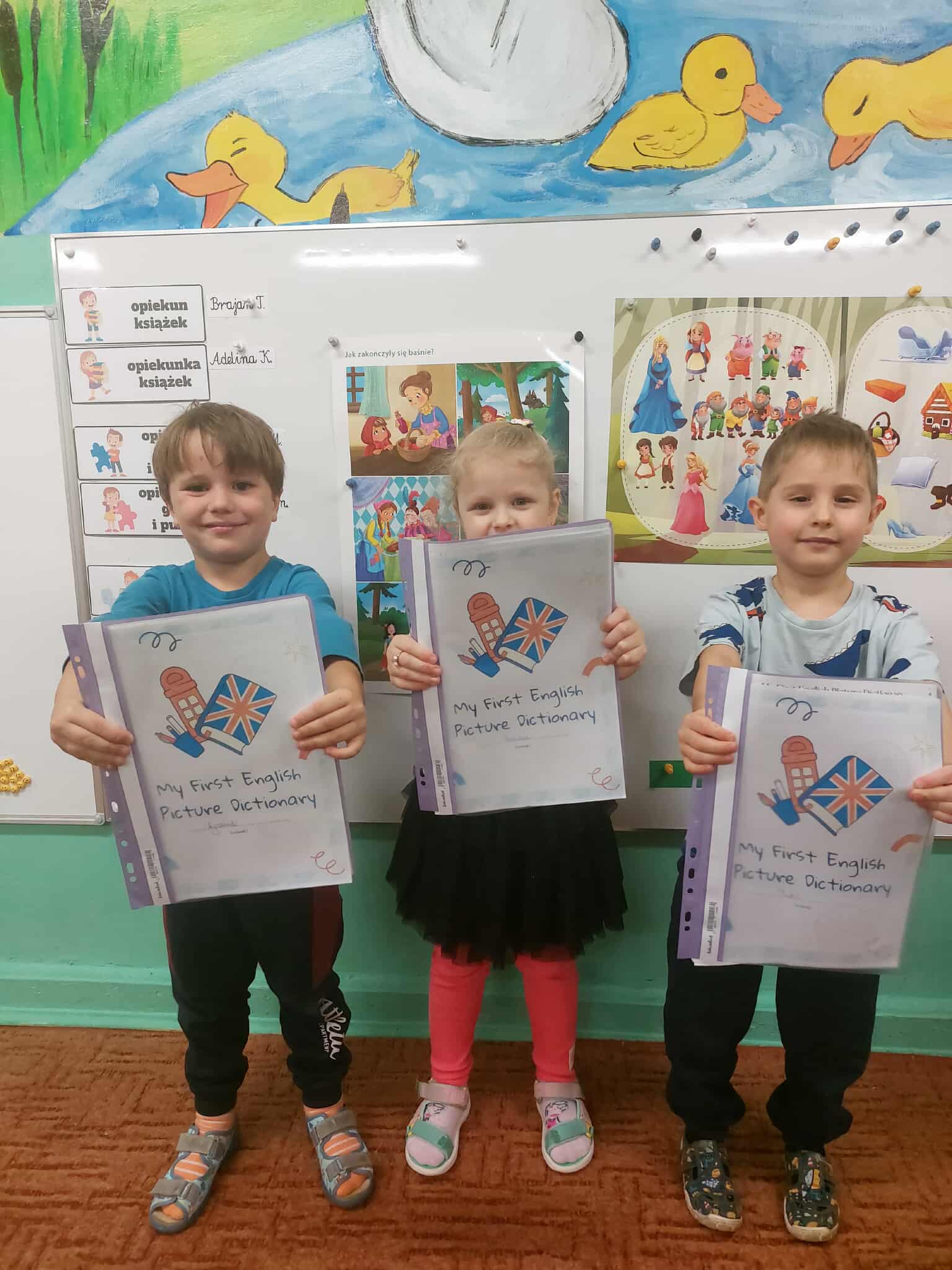 Nasze Liski rozpoczęły w tym tygodniu realizację projektu „My First English Picture Dictionary”. Celem projektu jest stworzenie własnego, kolorowego słownika obrazkowego w języku angielskim. Dzieci poznają i utrwalają słownictwo w ciekawy, twórczy sposób – poprzez samodzielne kolorowanie ilustracji przedstawiających wybrane słówka.