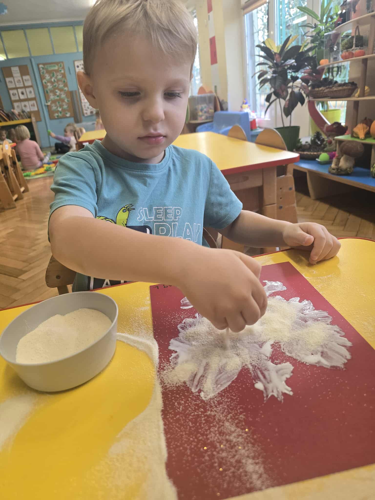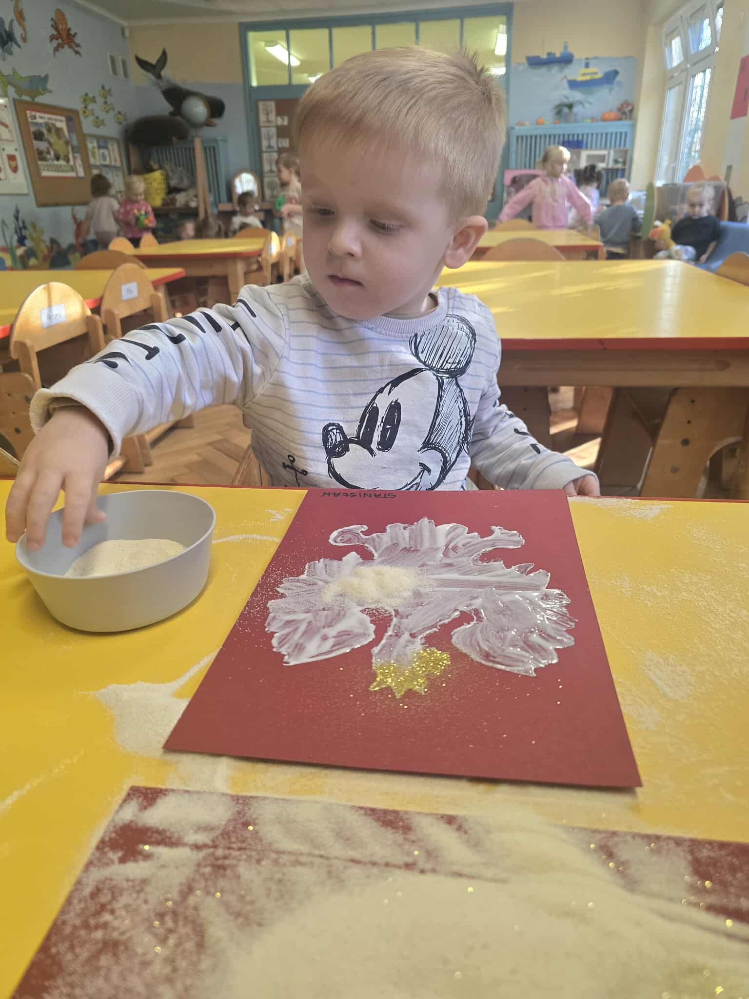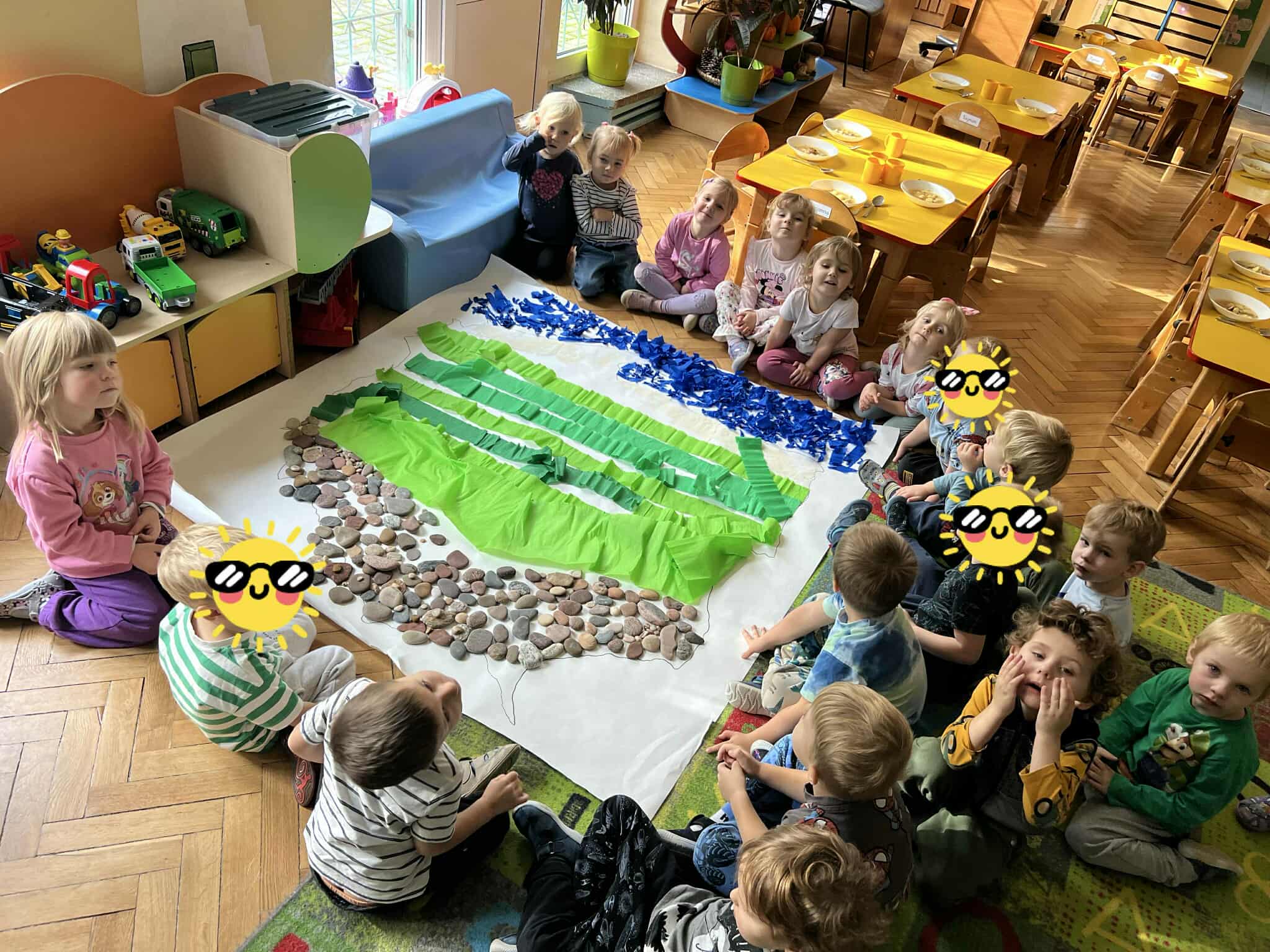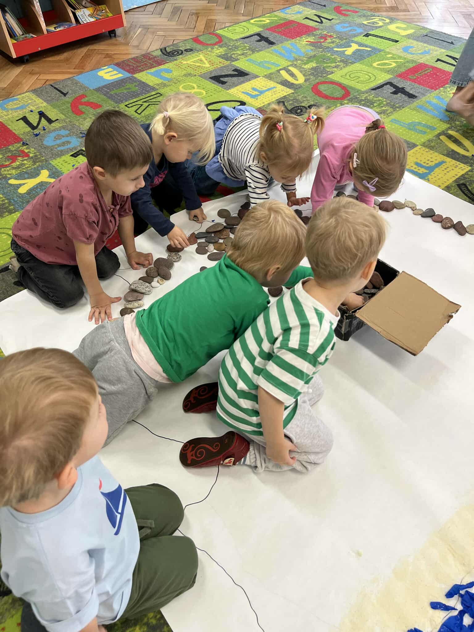 Podczas zajęć plastycznych dzieci wykazały się ogromną kreatywnością – powstały piękne prace inspirowane polskimi symbolami narodowymi, wykonane z wykorzystaniem różnych technik. Użyliśmy m.in. kaszy manny, bibuły oraz kamieni, tworząc wyjątkowe, teksturalne dzieła.