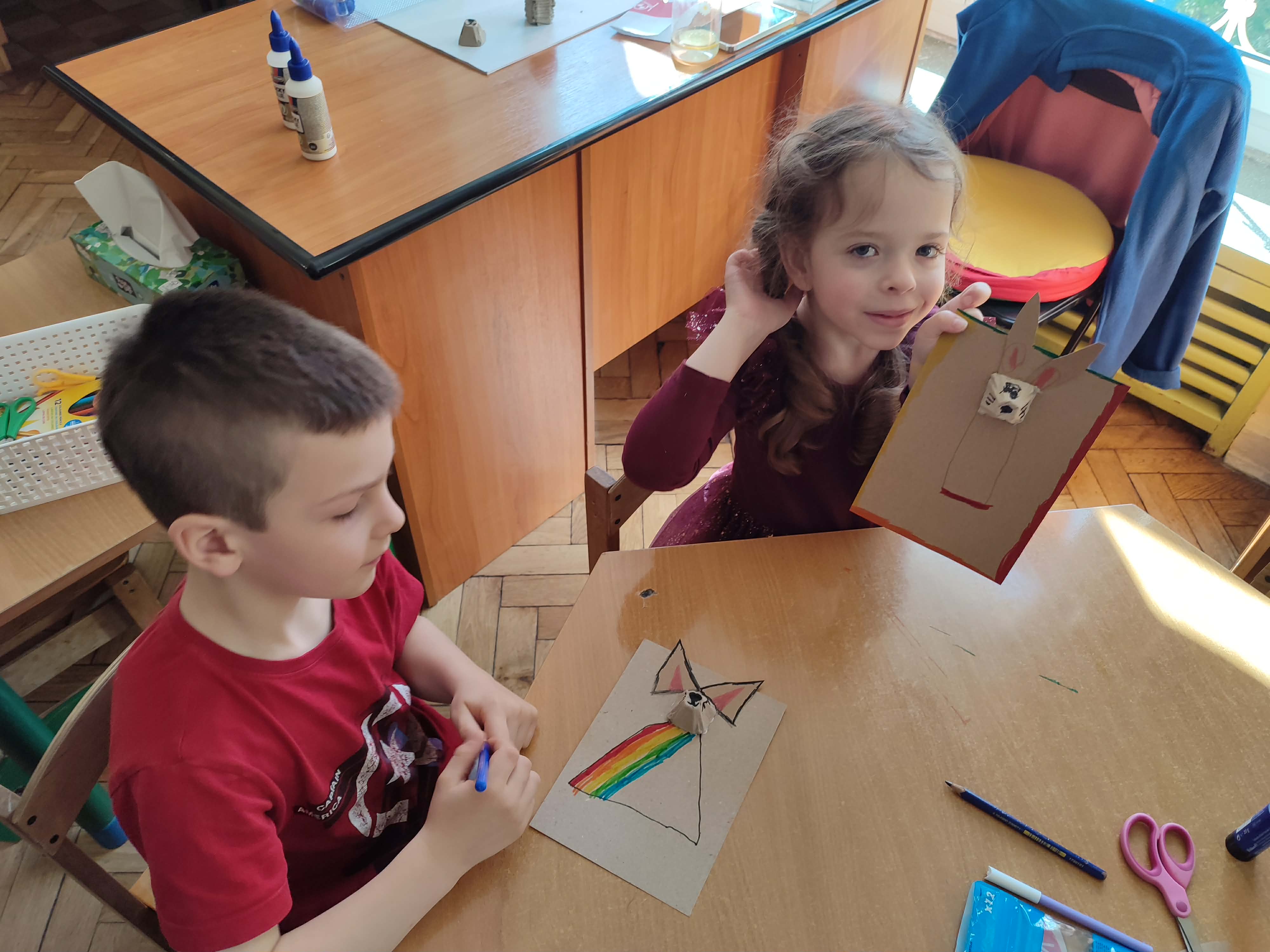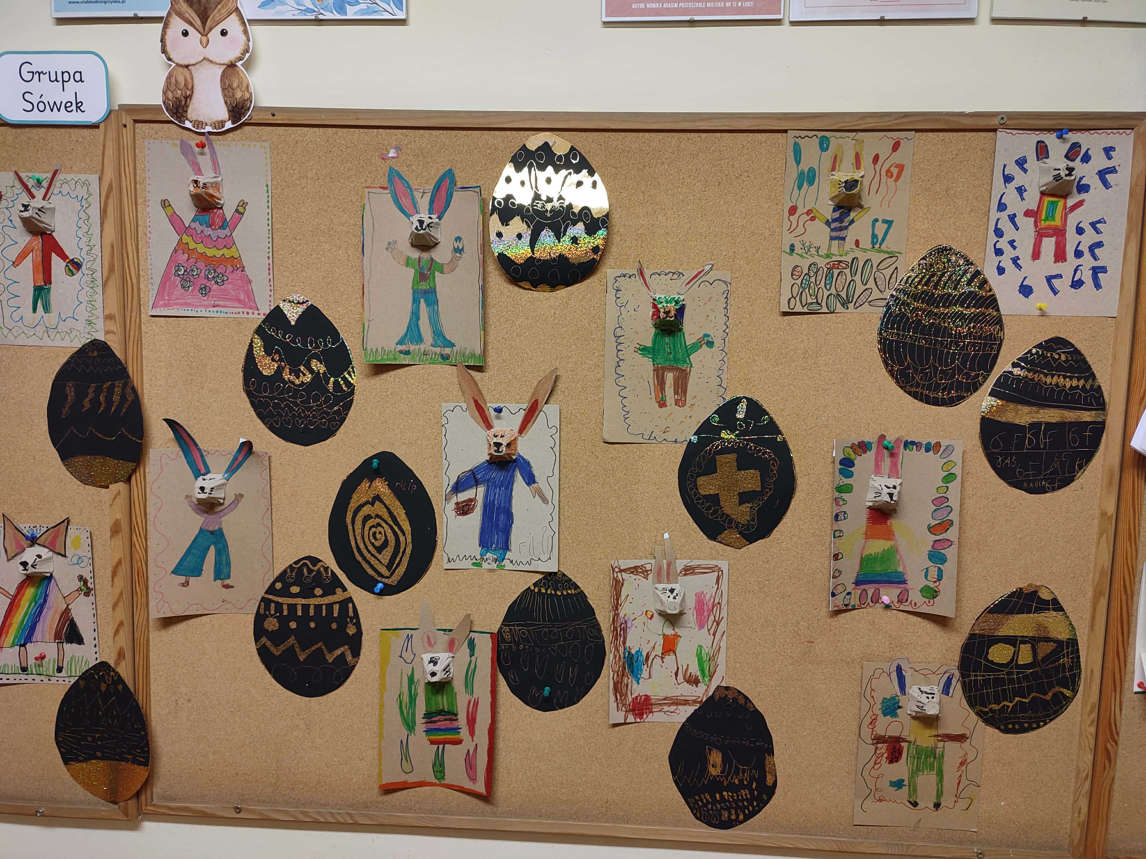 W tym tygodniu w naszym przedszkolu panowała wielkanocna atmosfera. Wspólnie uczestniczyliśmy w świątecznym obiedzie oraz w poszukiwaniu jajeczek pozostawionych przez zajączka w ogrodzie. Poznaliśmy najważniejsze zwyczaje i tradycje oraz sprawdzaliśmy, co powinno znaleźć się w koszyczku wielkanocnym. Układaliśmy z liter napis „Wielkanoc”, utrwalając samogłoski i spółgłoski, a także kodowaliśmy i przeliczaliśmy z wykorzystaniem jajek. Zasialiśmy rzeżuchę w specjalnie przygotowanych przez nas pojemnikach, tworząc z nich wielkanocne zajączki. Wykonaliśmy również pisanki metodą wydrapywanki oraz zajączki z wytłaczanek po jajkach. To był radosny i twórczy tydzień!