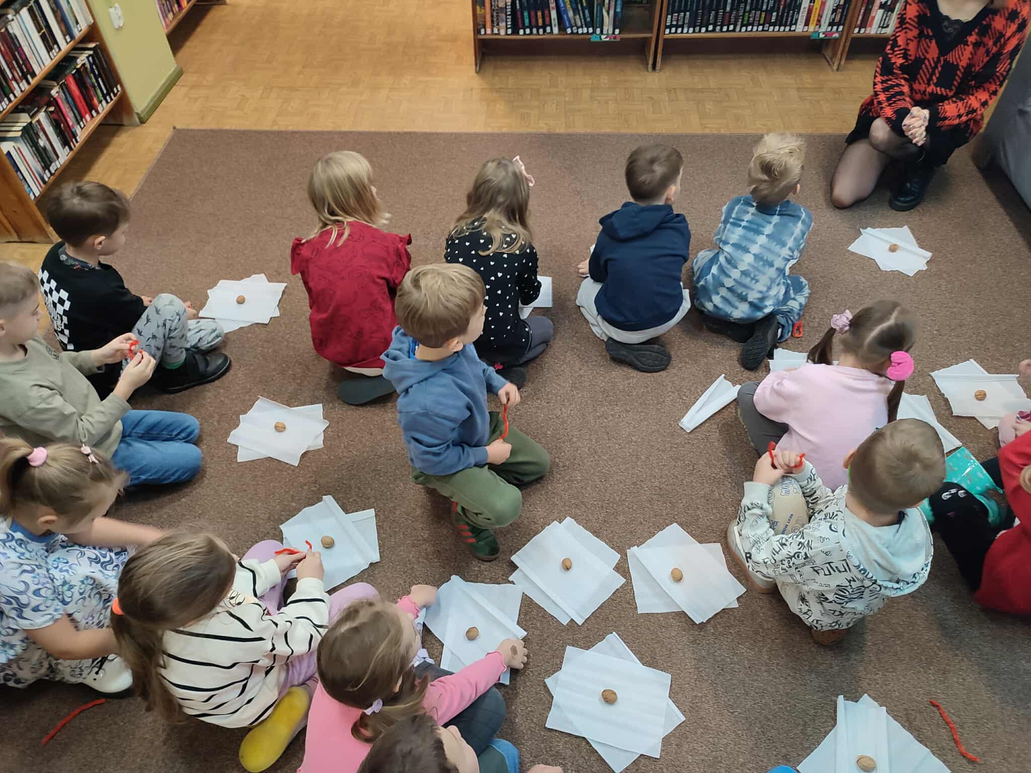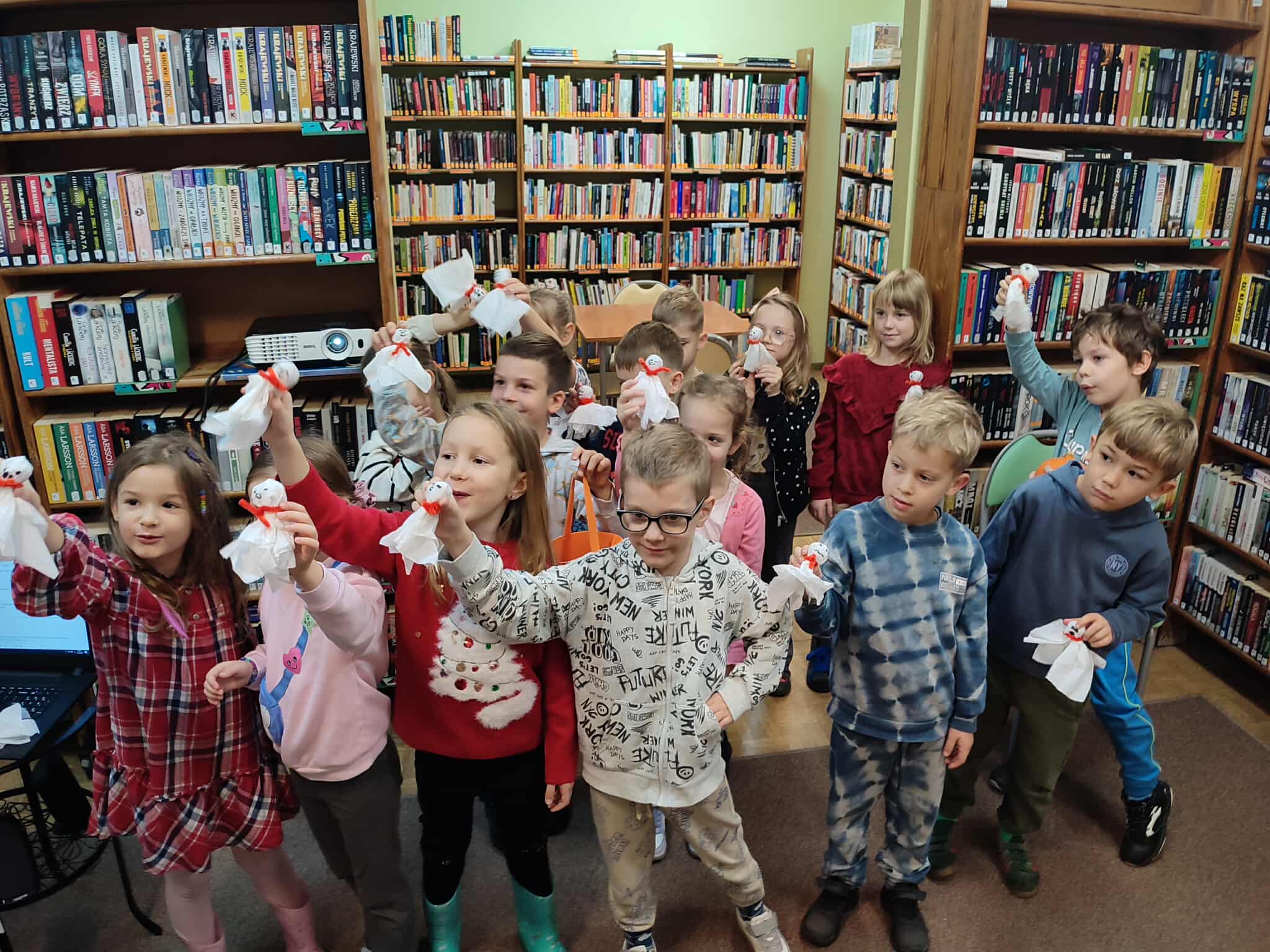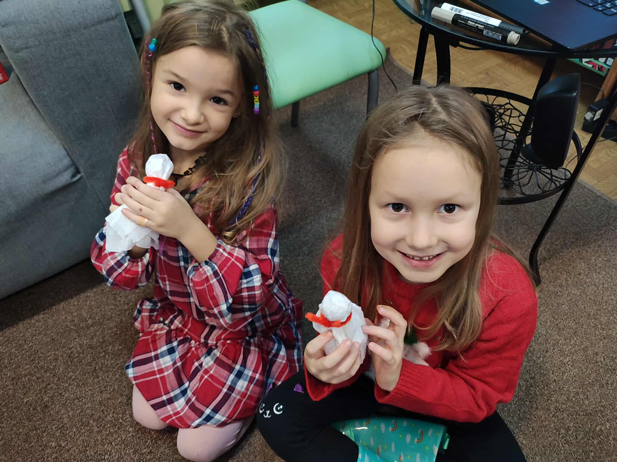 Pani opowiedziała nam o Halloween – dowiedzieliśmy się, skąd się wzięło to święto, kto je obchodzi i jakie są z nim związane zwyczaje. Potem sami robiliśmy duszki – z bibuły i orzechów włoskich. Każdy duszek był inny i wyjątkowy!