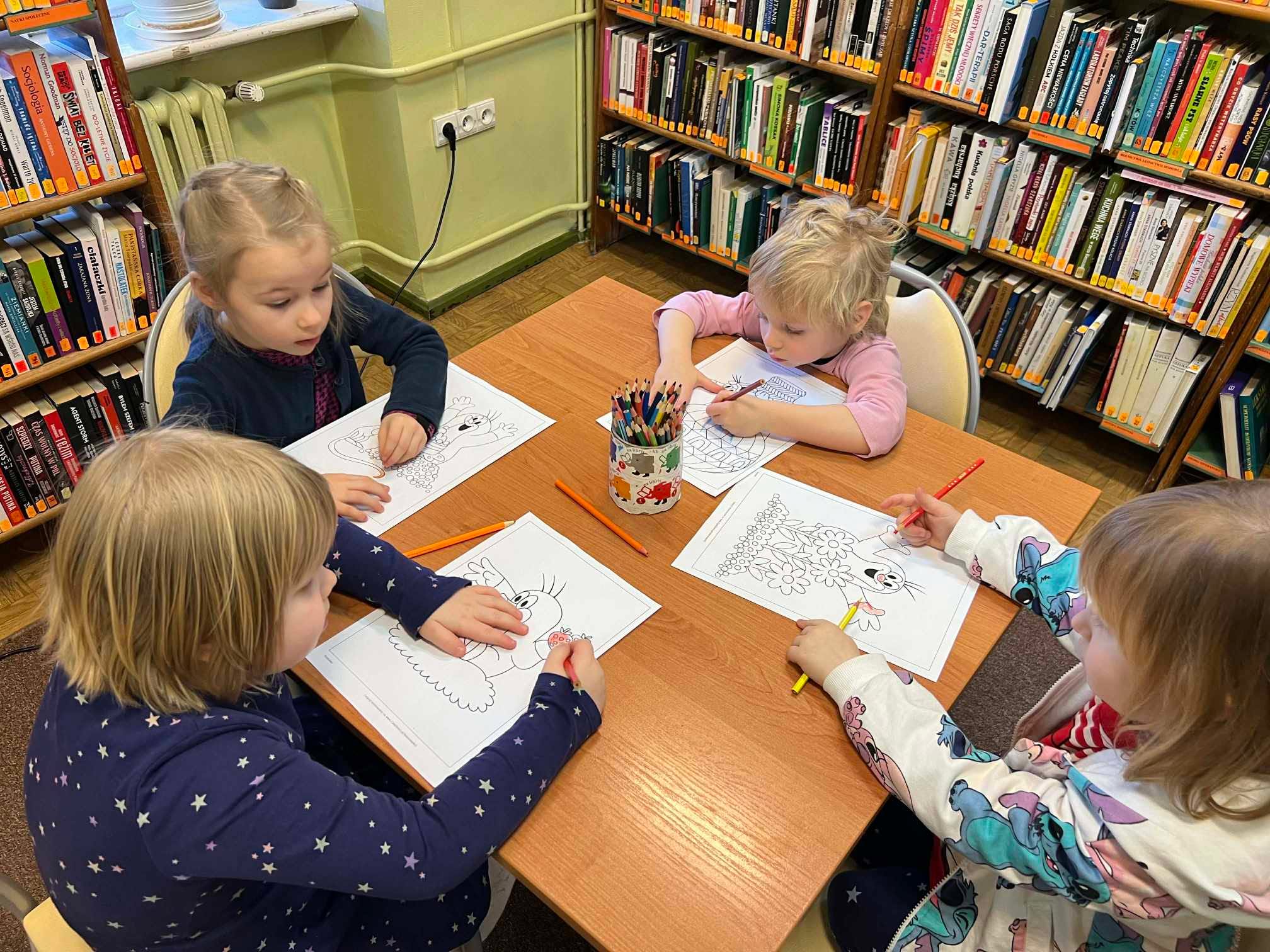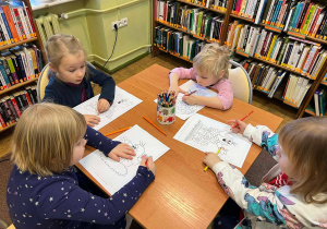 Następnie uczestniczyliśmy w zajęciach plastycznych, podczas których kolorowaliśmy obrazki przedstawiające bohatera bajki. Spotkanie w bibliotece było bardzo udane.