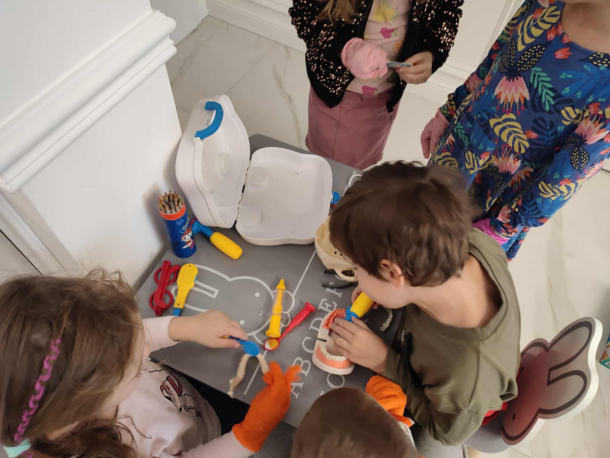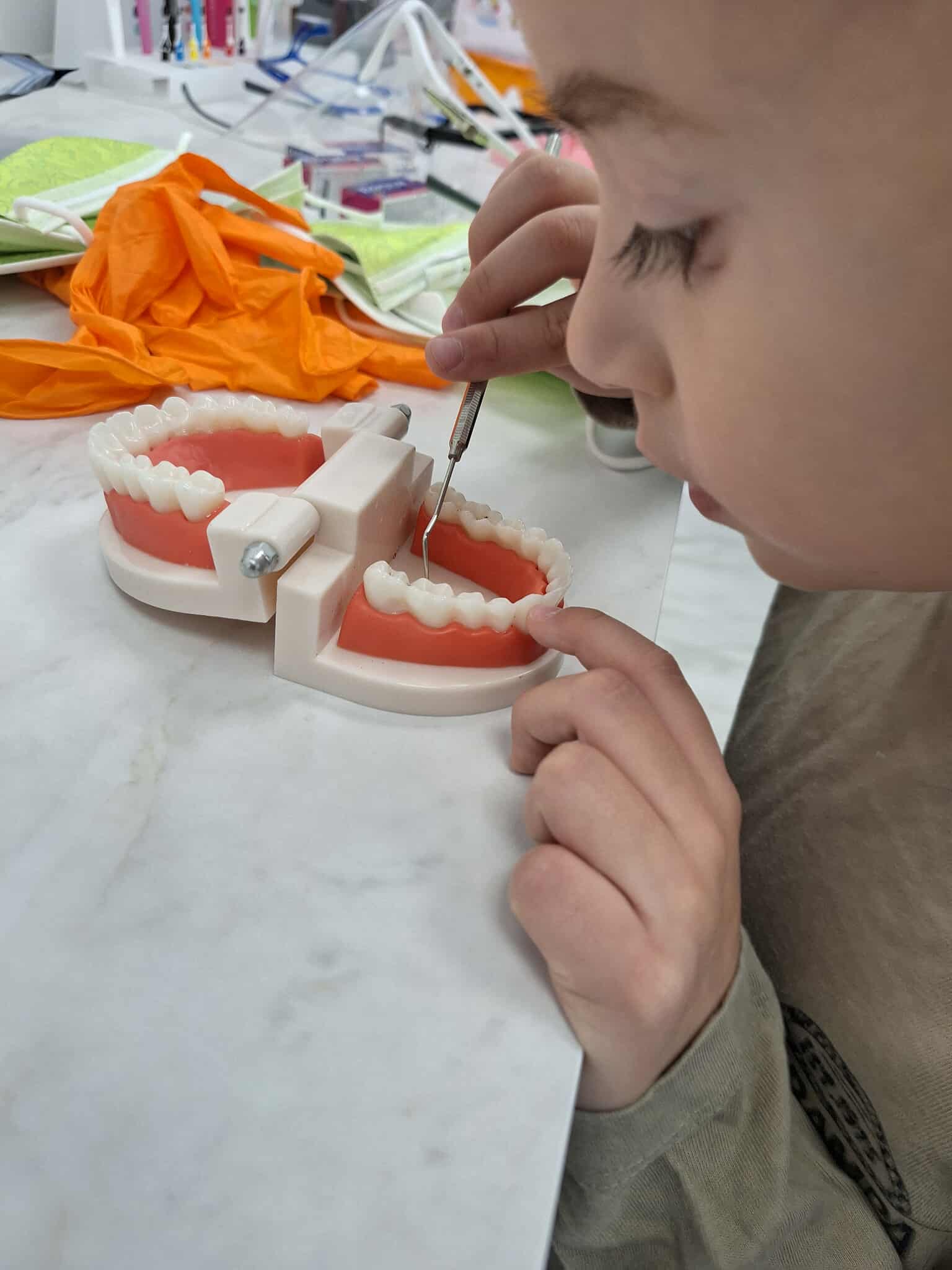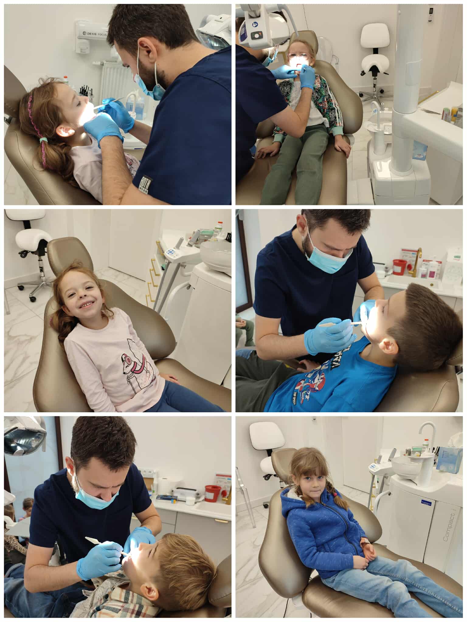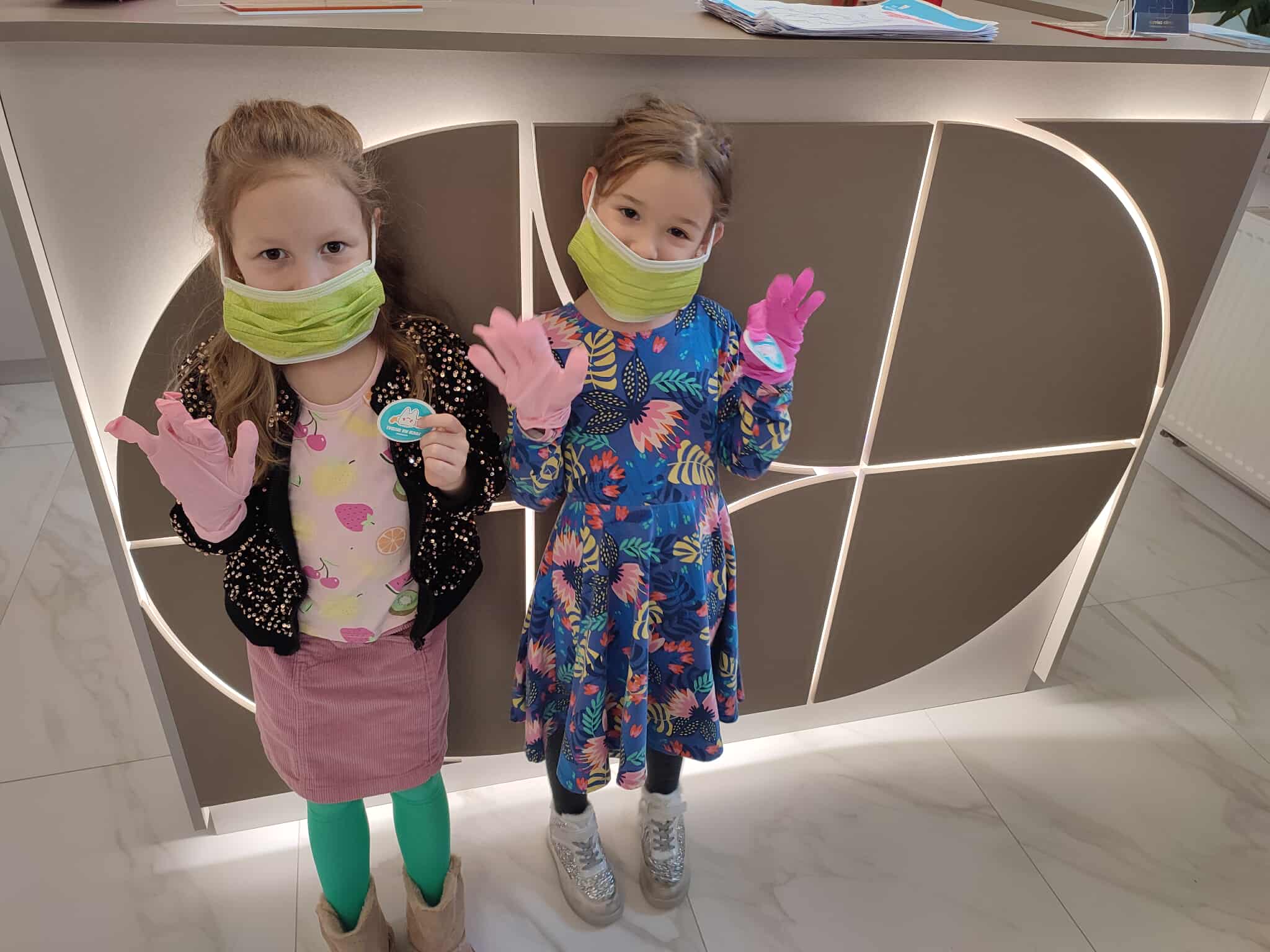 W czwartek wybraliśmy się do gabinetu stomatologicznego – Sonrisa Clinic! Wszystko zorganizowała mama naszego kolegi Kacpra, za co bardzo, bardzo dziękujemy! Dziękujemy też za super gościnę i wspaniałe upominki, które sprawiły nam dużo radości. Na miejscu każdy z nas miał przegląd zębów, a niektórzy także fluoryzację – zupełnie jak dorośli! Była też mini sesja zdjęciowa w maseczkach, rękawiczkach itp. poczuliśmy się jak prawdziwi dentyści! Oprócz tego bawiliśmy się przy kolorowankach i zadaniach, poznaliśmy ciekawe rzeczy o zębach i ich pielęgnacji. To była świetna przygoda i już wiemy, że wizyty u dentysty wcale nie muszą być straszne!