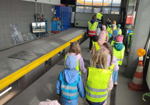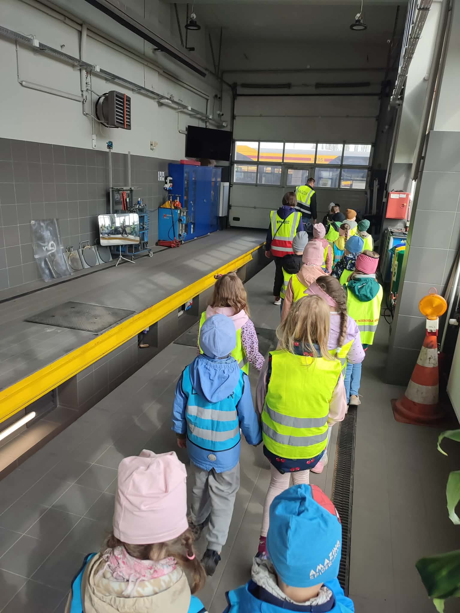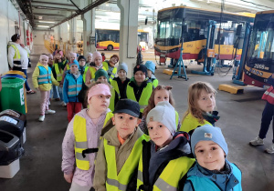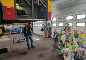 Między innymi mieliśmy okazję wybrać się w podróż autobusem po zajezdni, gdzie każde z nas musiało skasować swój bilet. Zwiedziliśmy magazyn, zobaczyliśmy warsztat autobusowy oraz autobus na podnośniku, gdzie sprawdzane są m.in. elementy zawieszenia.