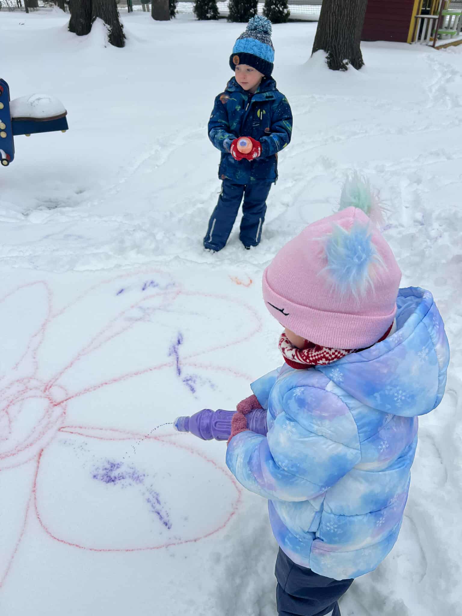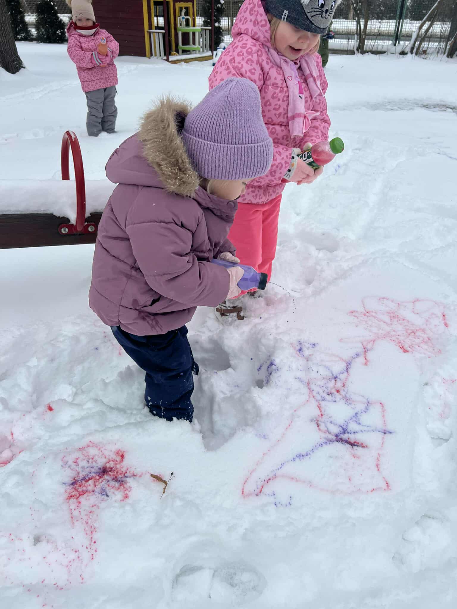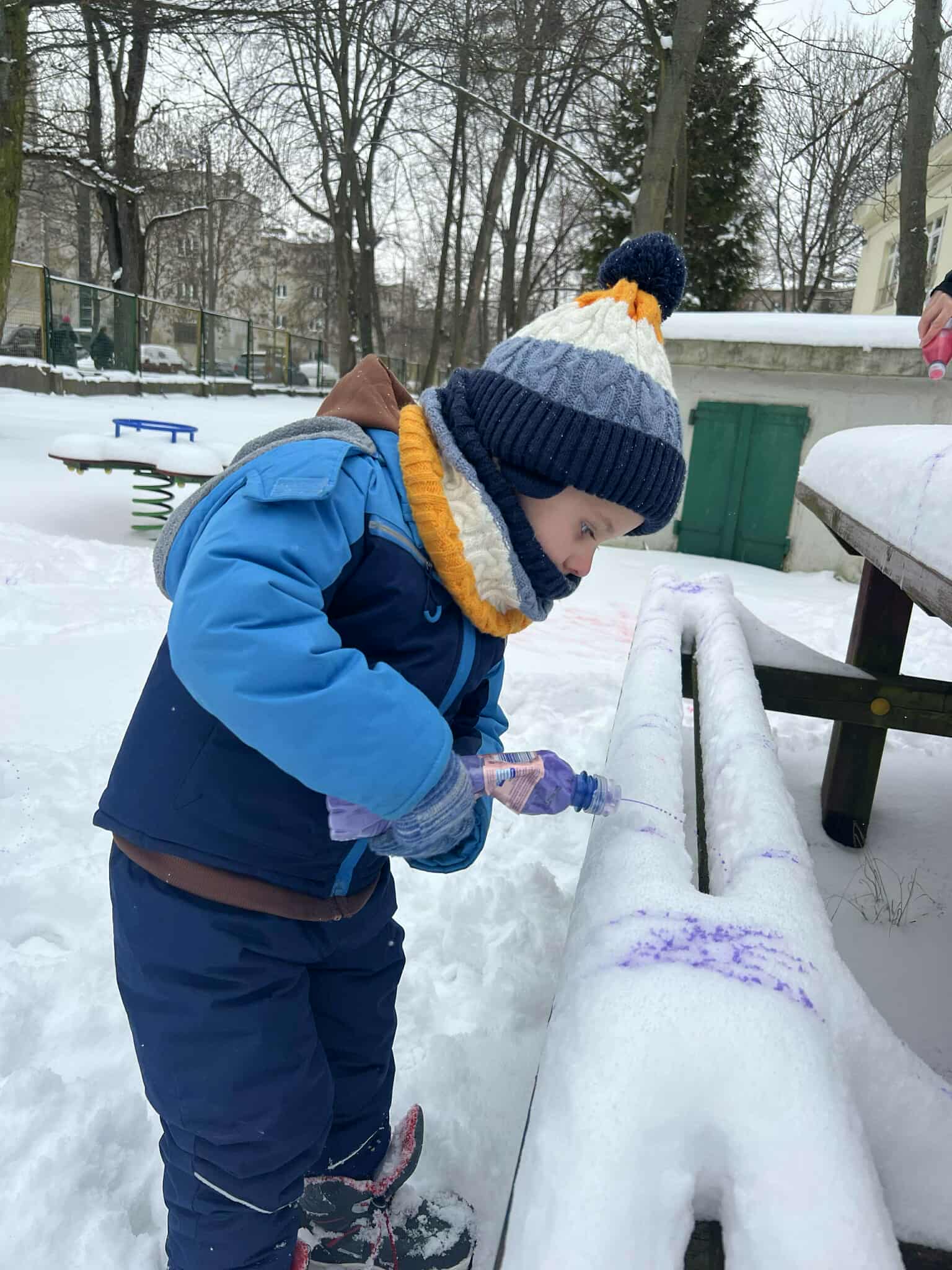 Kolorowaliśmy śnieg z wykorzystaniem wody i farby. Zjeżdżaliśmy z górki i robiliśmy śnieżne aniołki. Było mnóstwo radości, śmiechu i dobrej zabawy na świeżym powietrzu. To był bardzo udany, aktywny dzień pełen zimowych atrakcji.