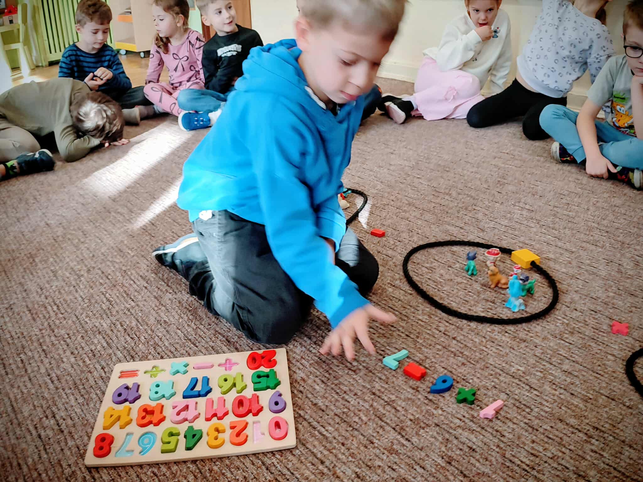 Ostatnio bawiliśmy się w prawdziwych matematyków! Rozpoznawaliśmy cyfry, rozwiązywaliśmy zagadki matematyczne i uczyliśmy się działań ze znakiem plus. Było liczenie, układanie, porównywanie i dużo radości! Niektóre zadania były trudne, ale nie poddawaliśmy się – razem wszystko się udało! Matematyka może być świetną zabawą!