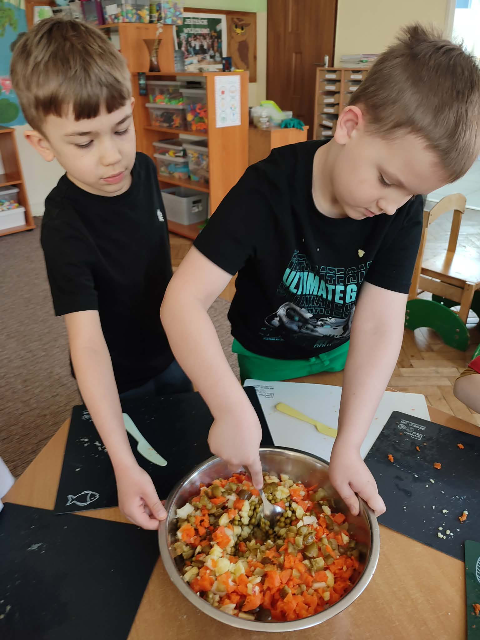 Na zakończenie naszych działań przygotowaliśmy wspólnie pyszną i zdrową sałatkę jarzynową. Było nie tylko smacznie, ale i bardzo radośnie!