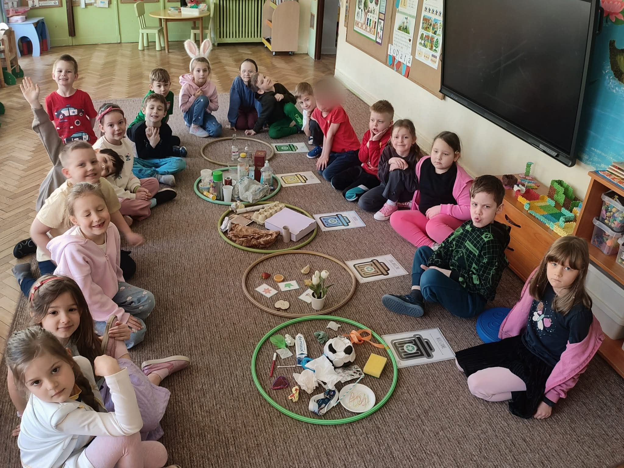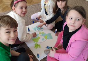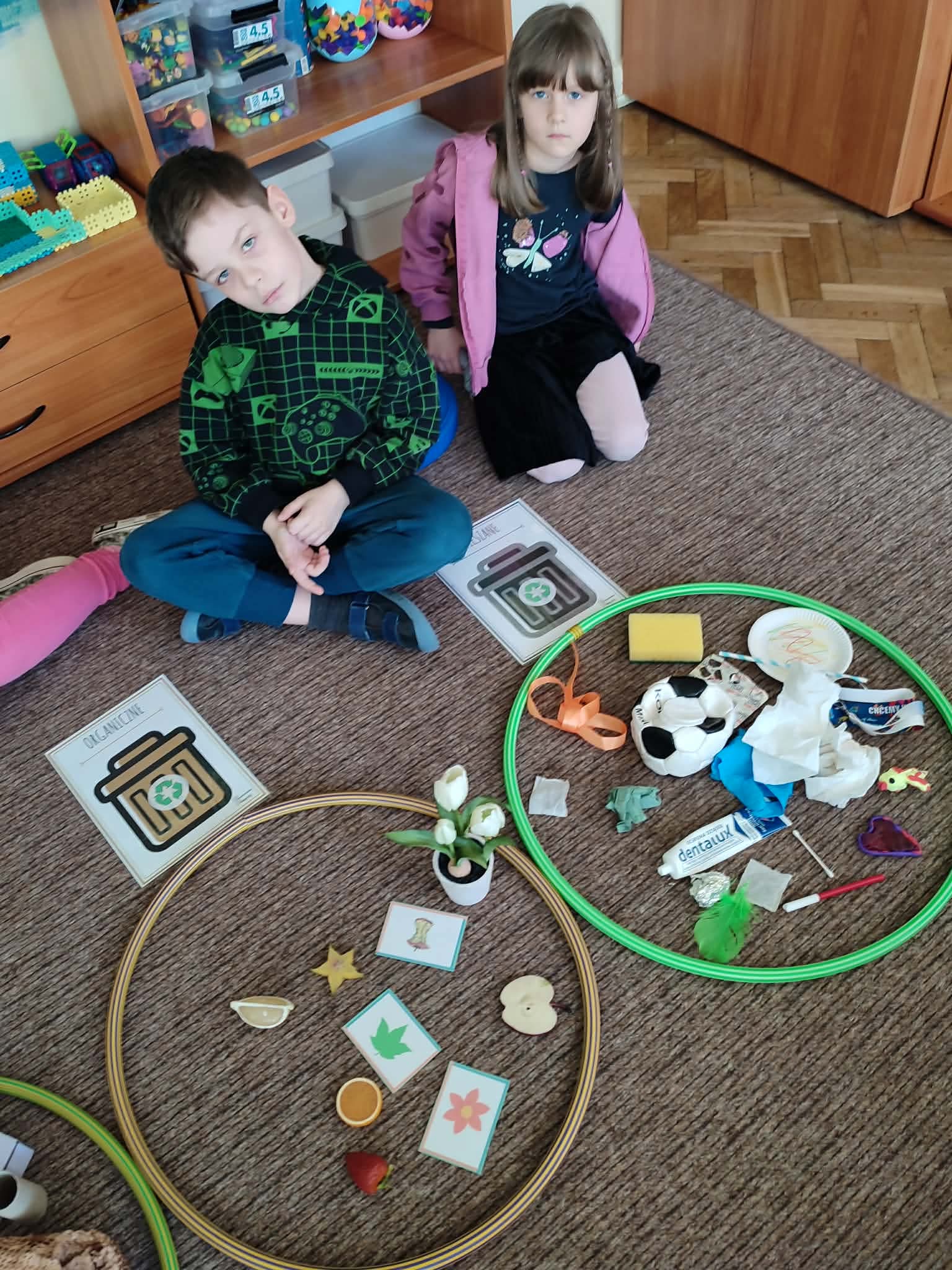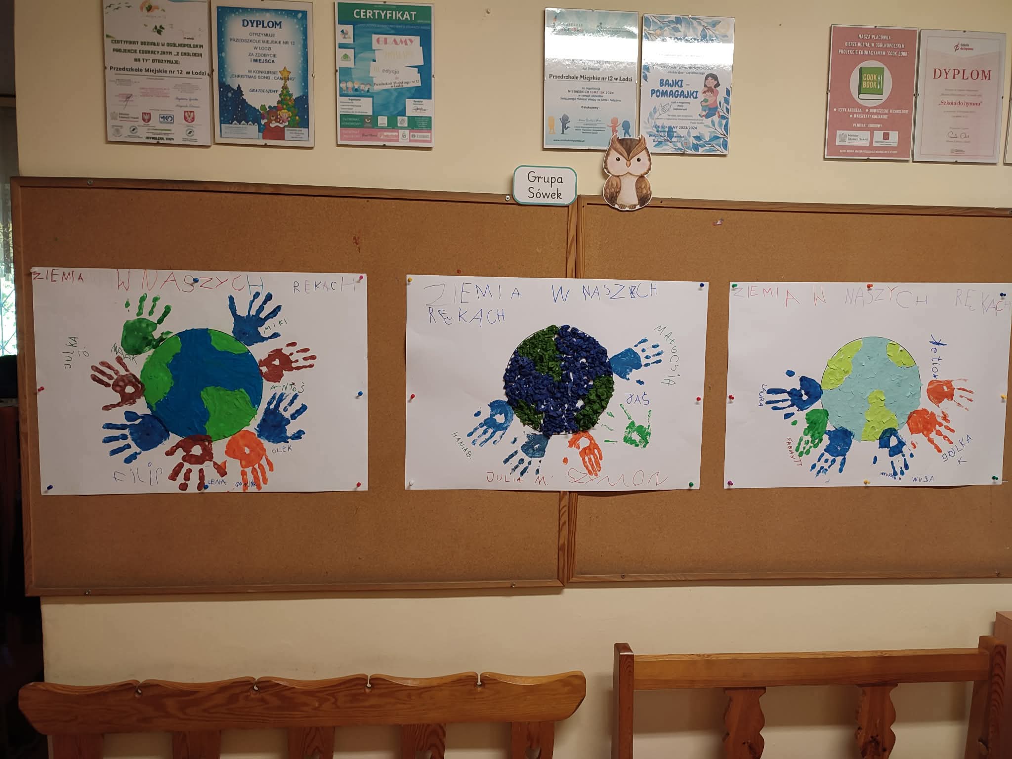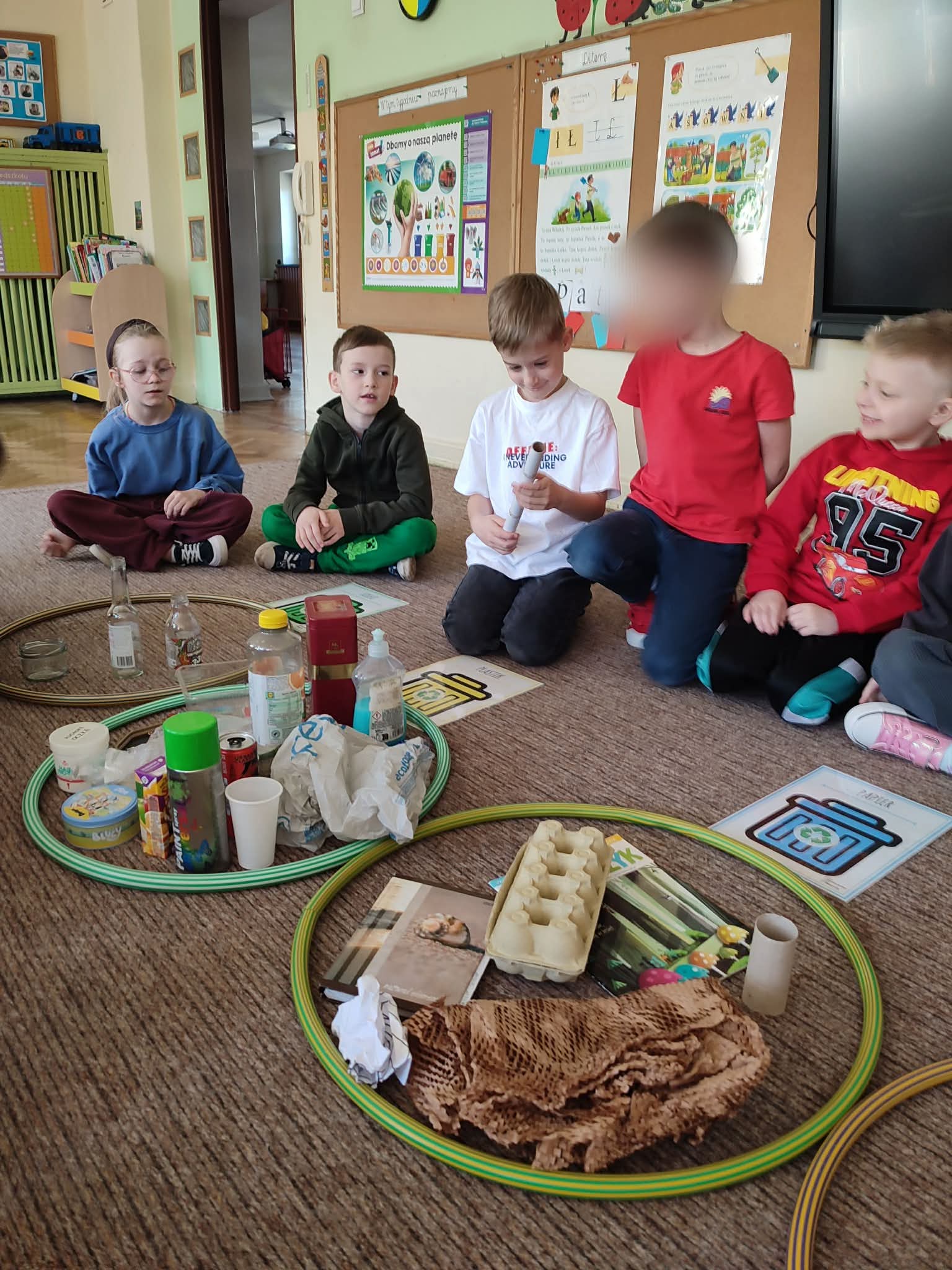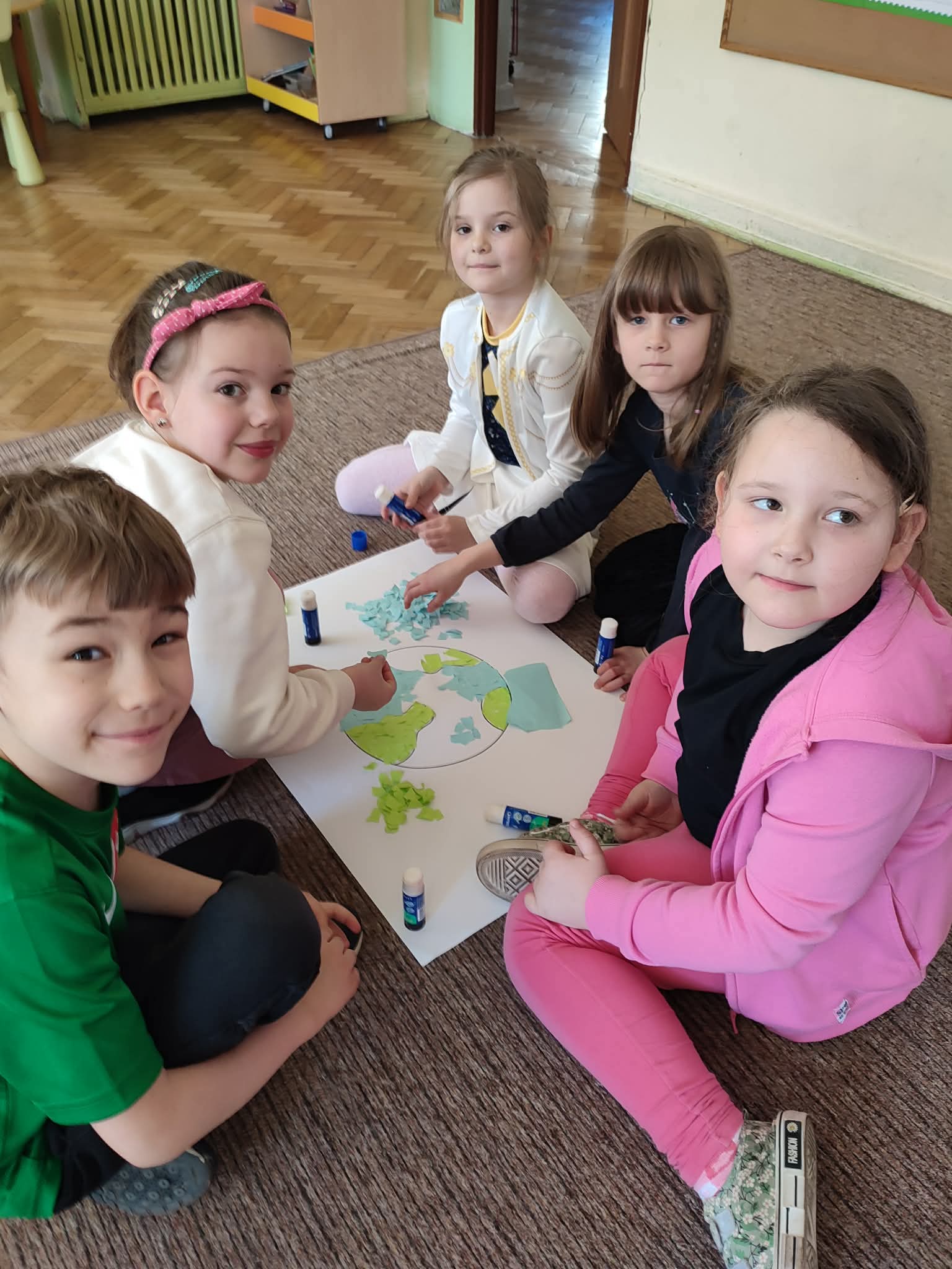 W tym tygodniu utrwalaliśmy wiadomości na temat sposobów dbania o naszą planetę. Przypomnieliśmy sobie zasady segregowania śmieci oraz rozmawialiśmy o znaczeniu słowa „recykling”. Cały tydzień zakończyliśmy wykonaniem zespołowych plakatów pt. „Ziemia w naszych rękach”.